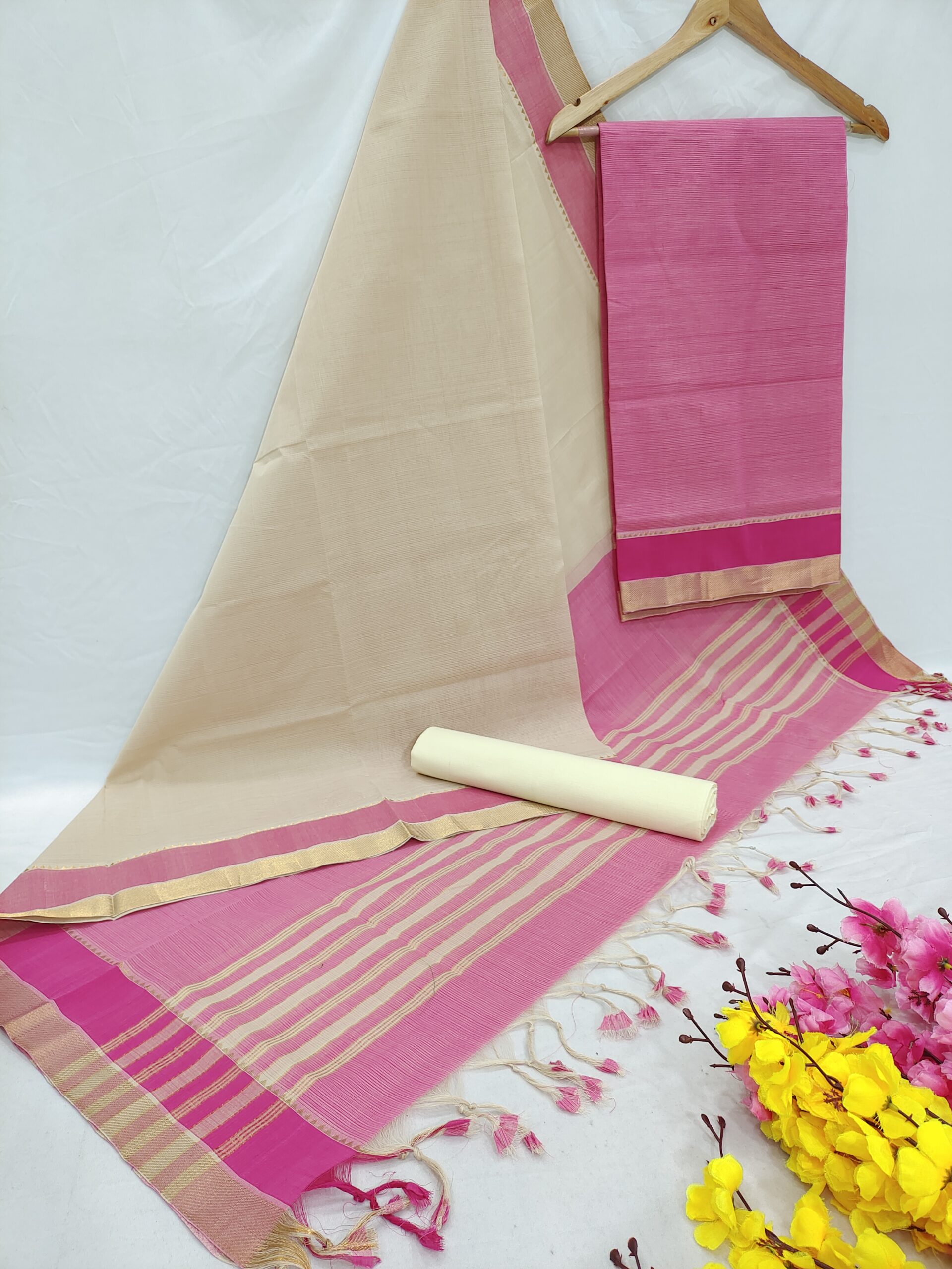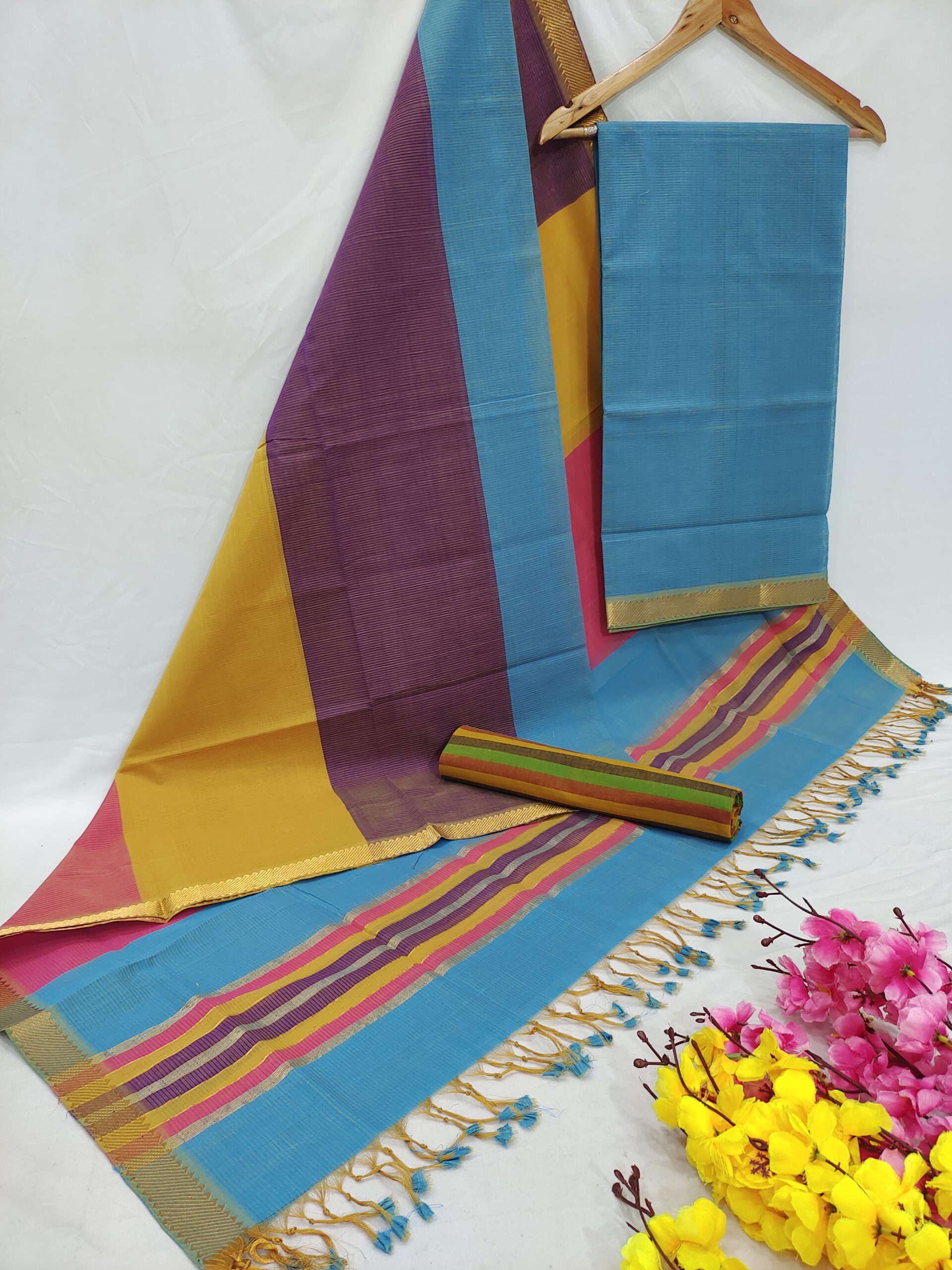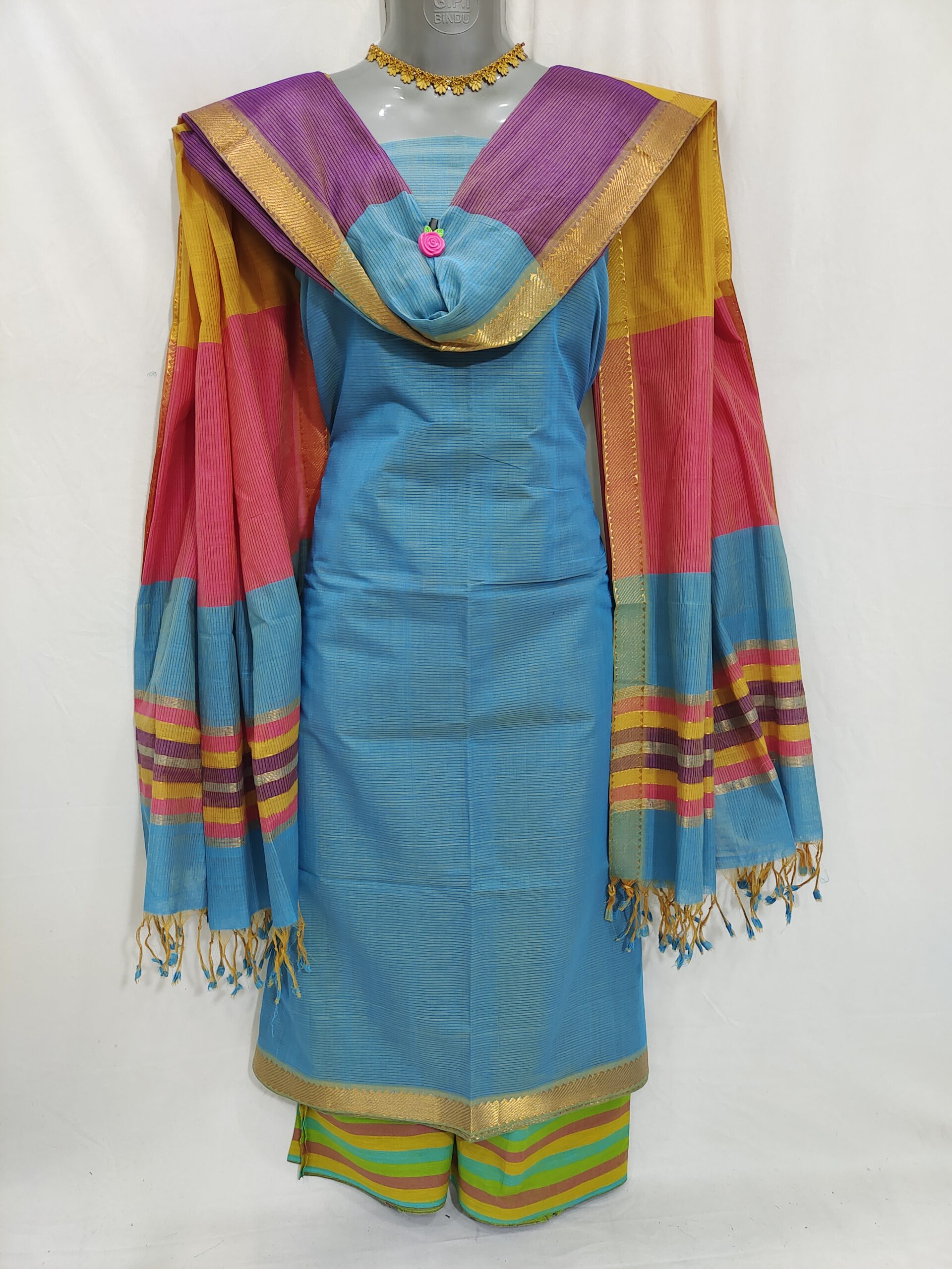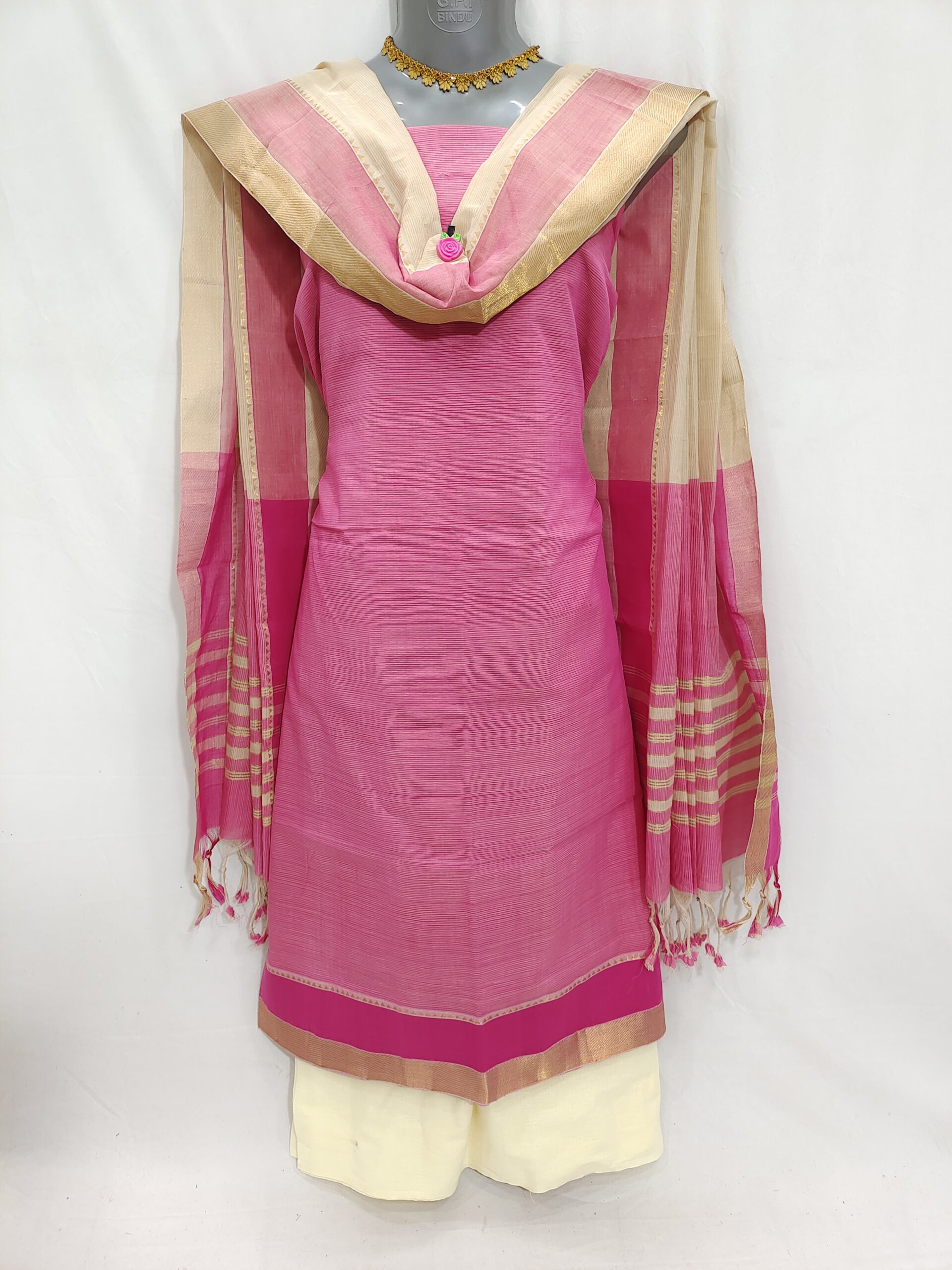 Mangalagiri Pure Handloom Cotton Zari Border Dress Material Set (Unstiched)