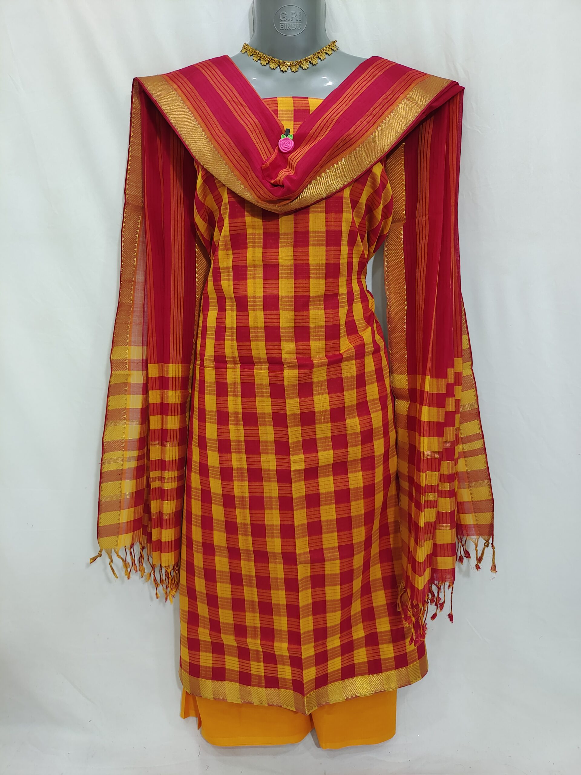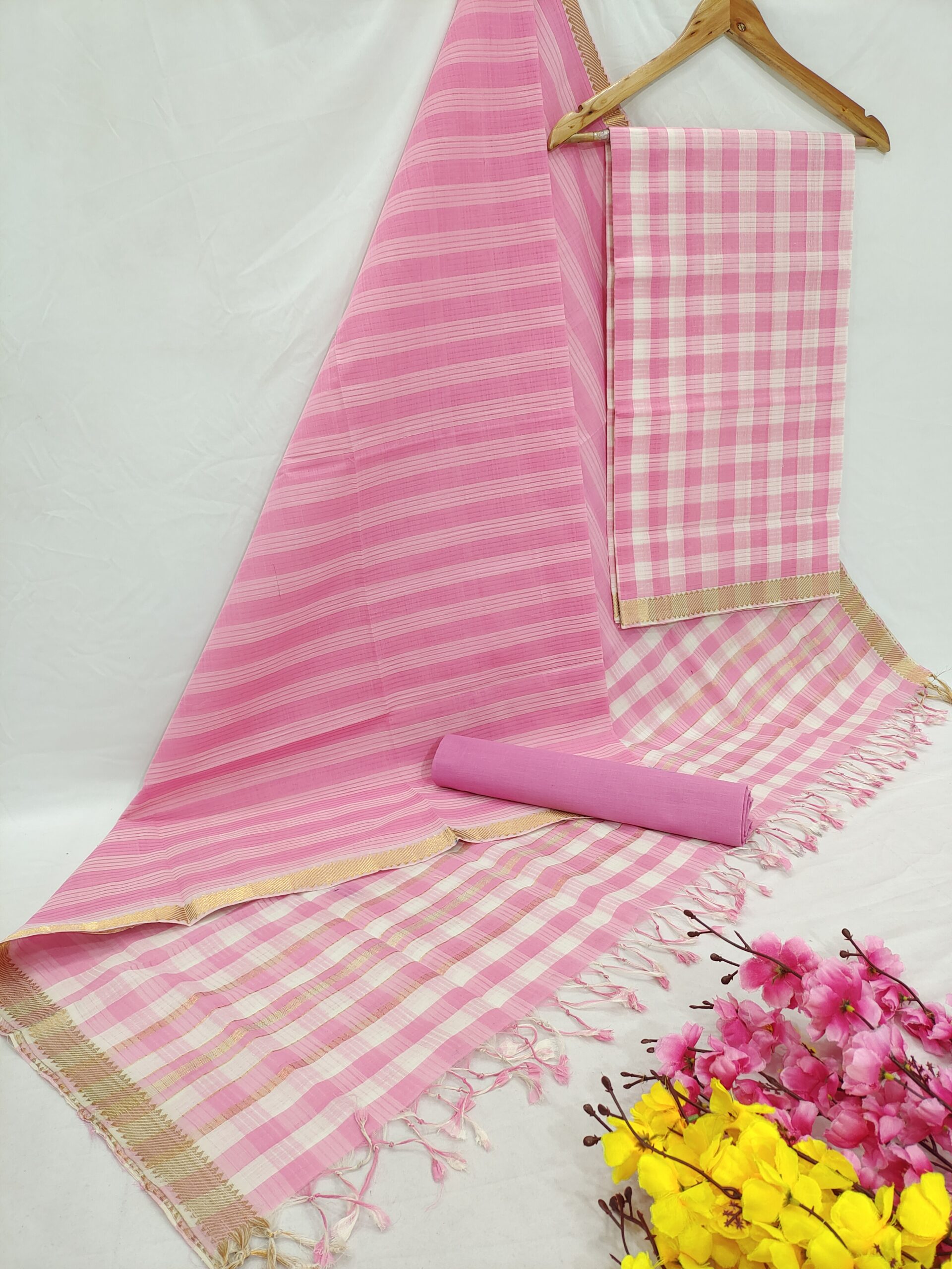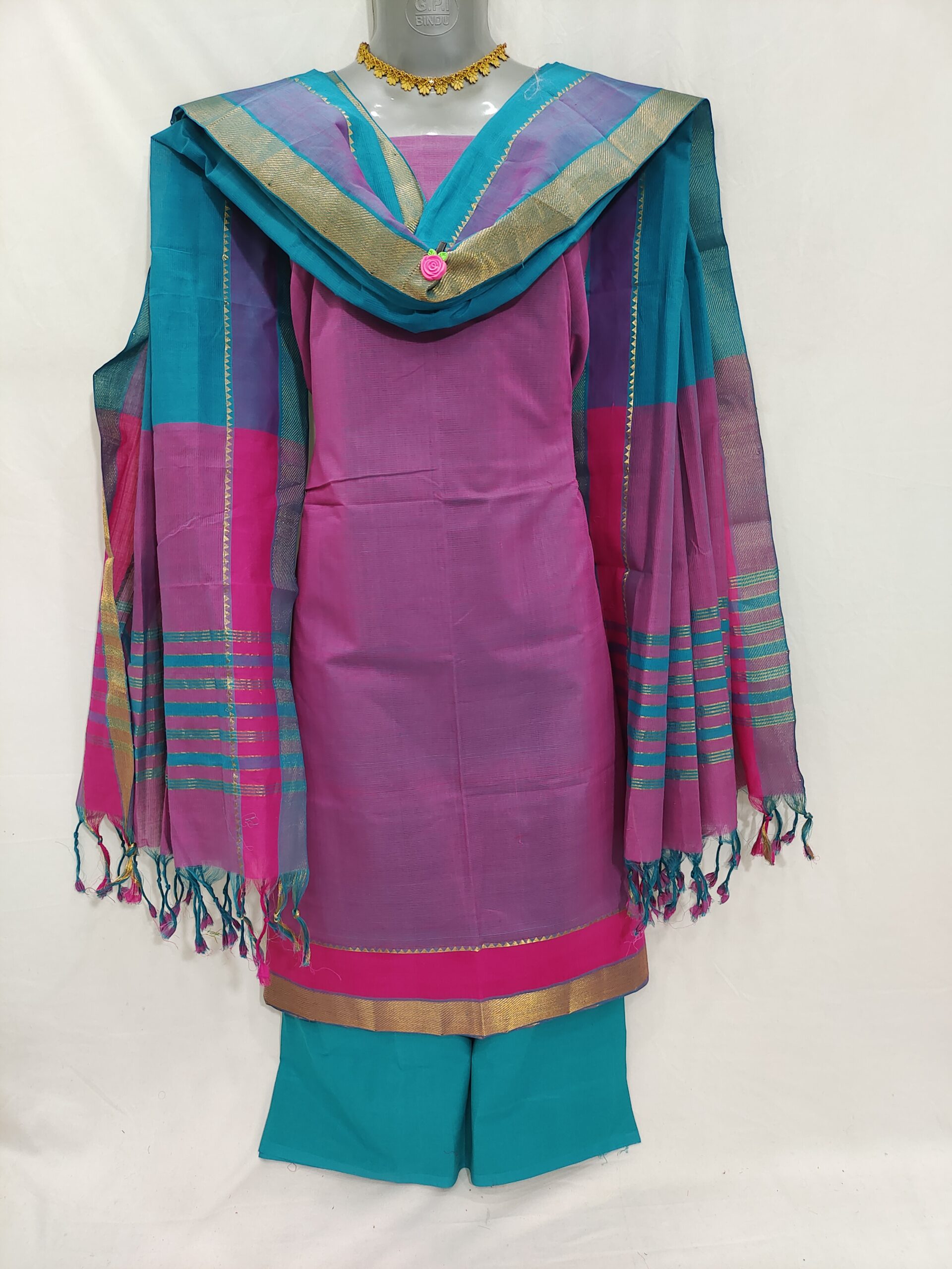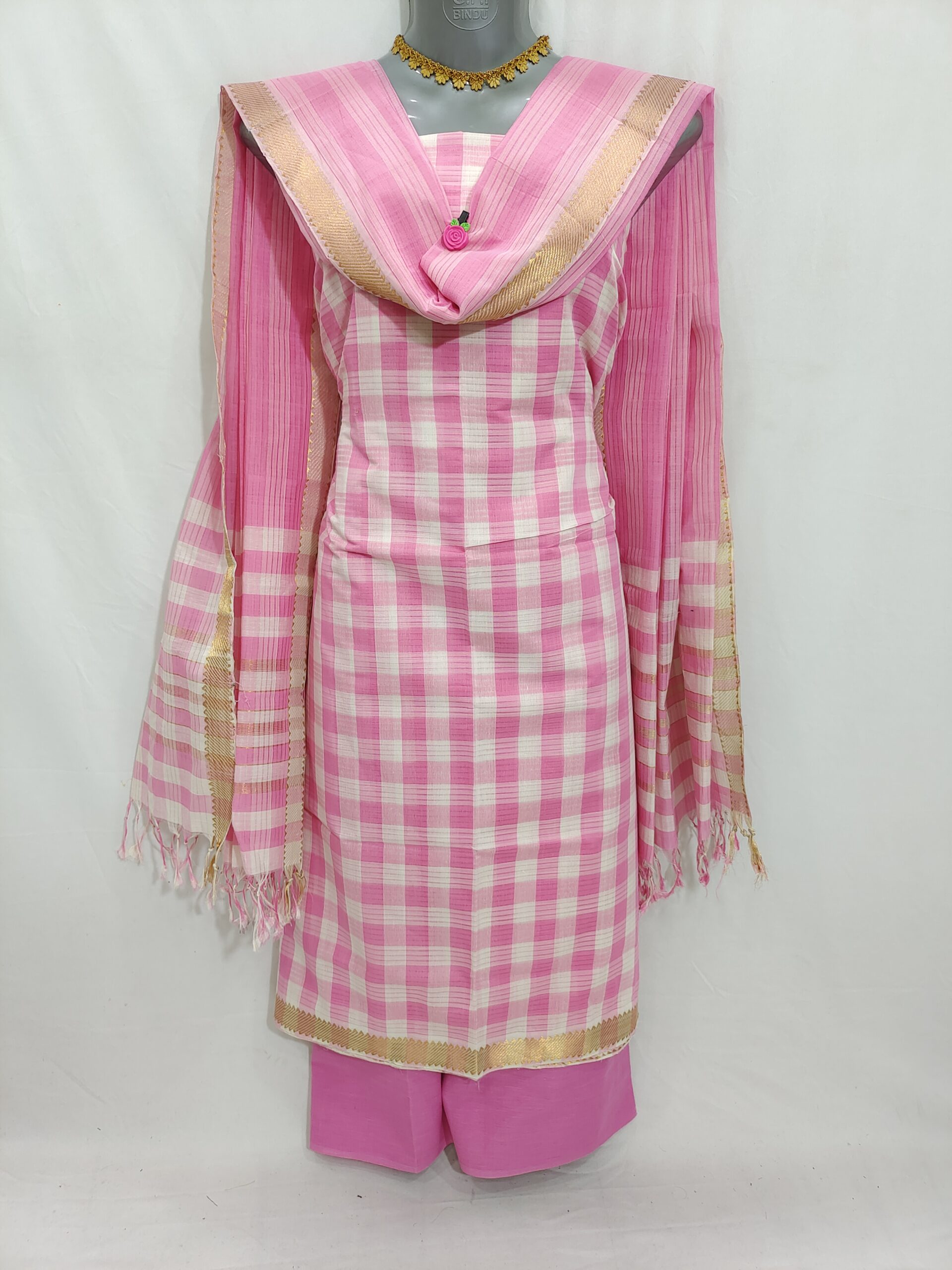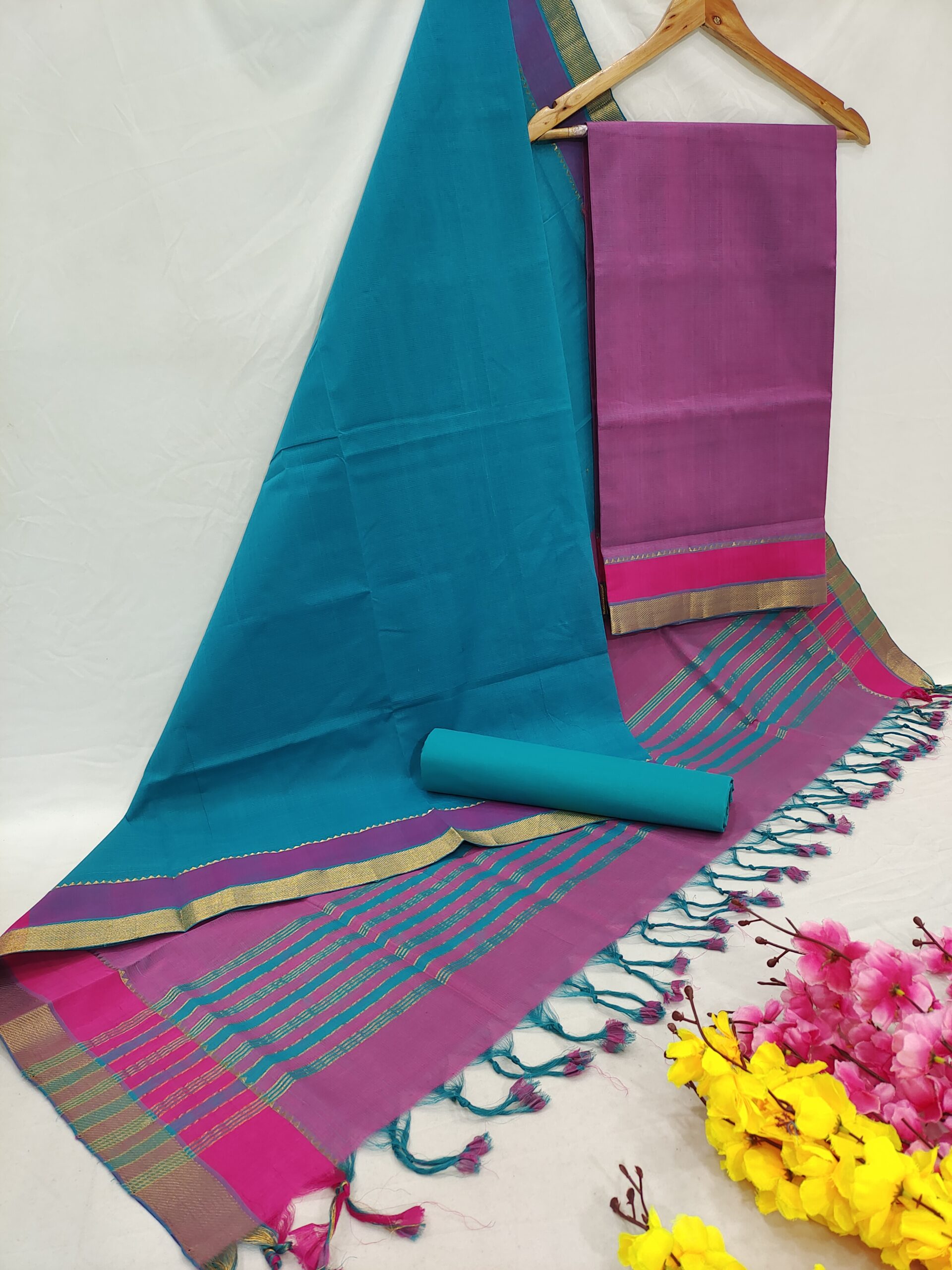 Mangalagiri Pure Handloom Cotton Zari Border Dress Material Set (Unstiched)