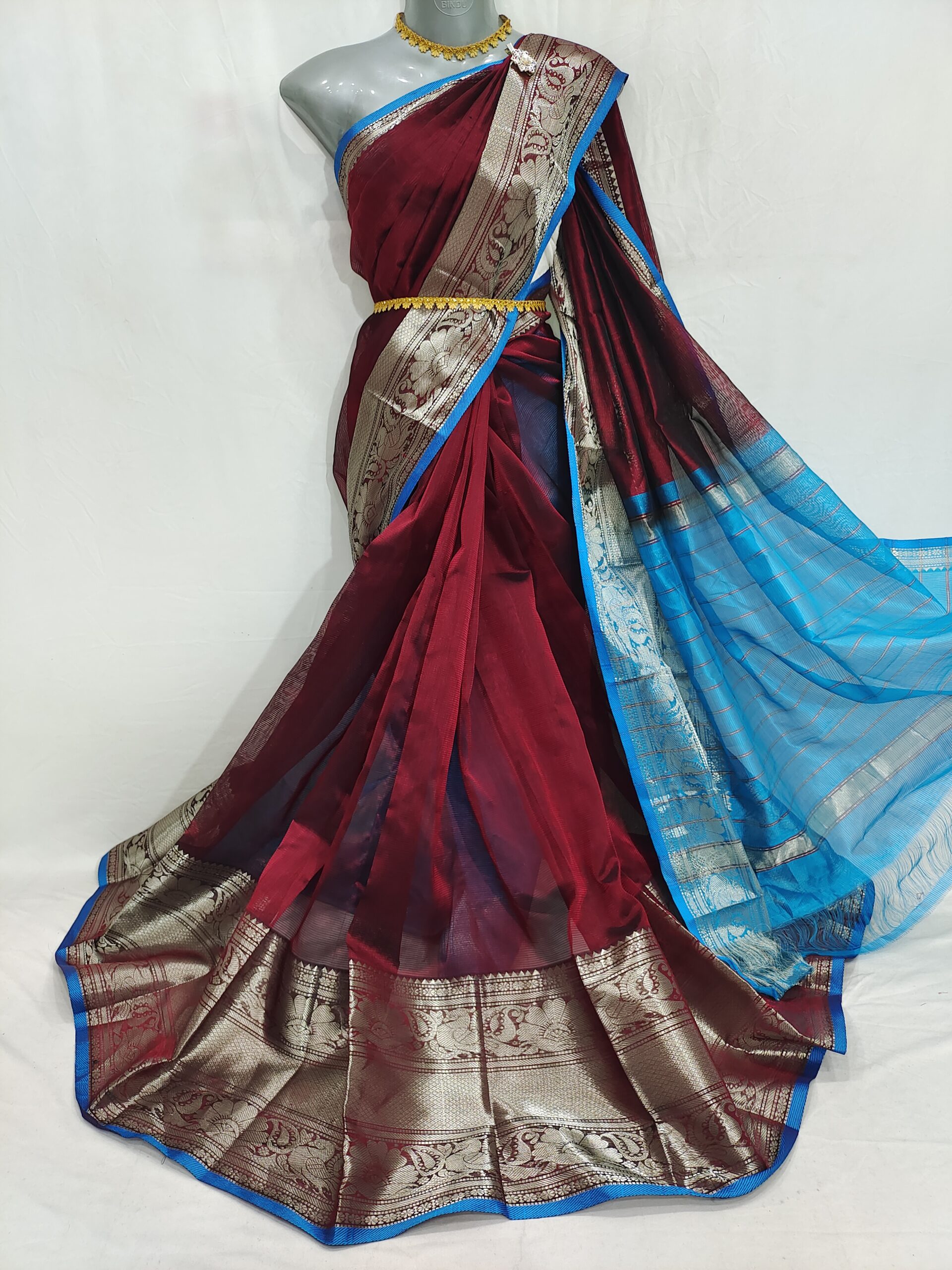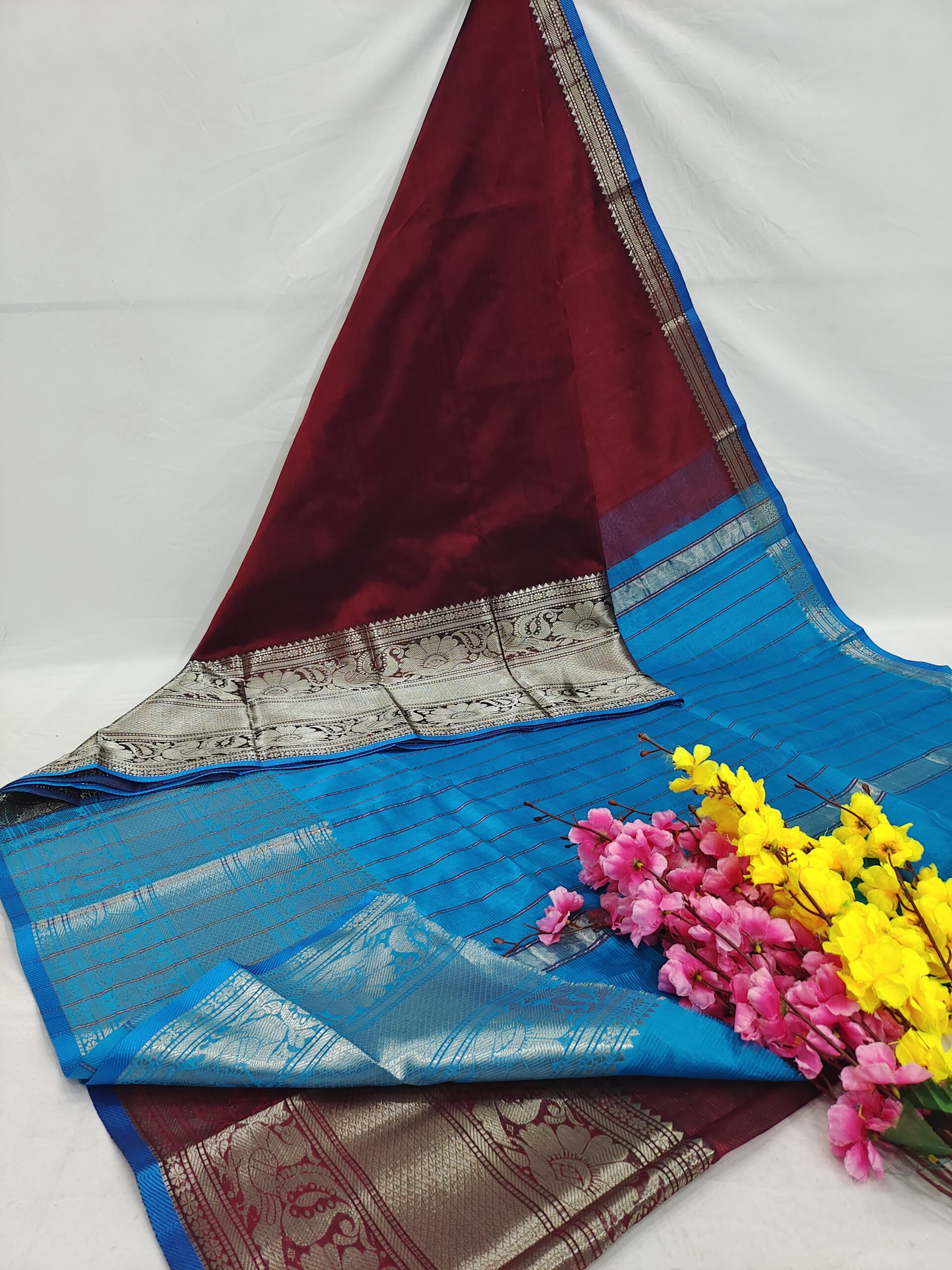 Mangalagiri Pattu Big Kanchi Border Plain Sarees
