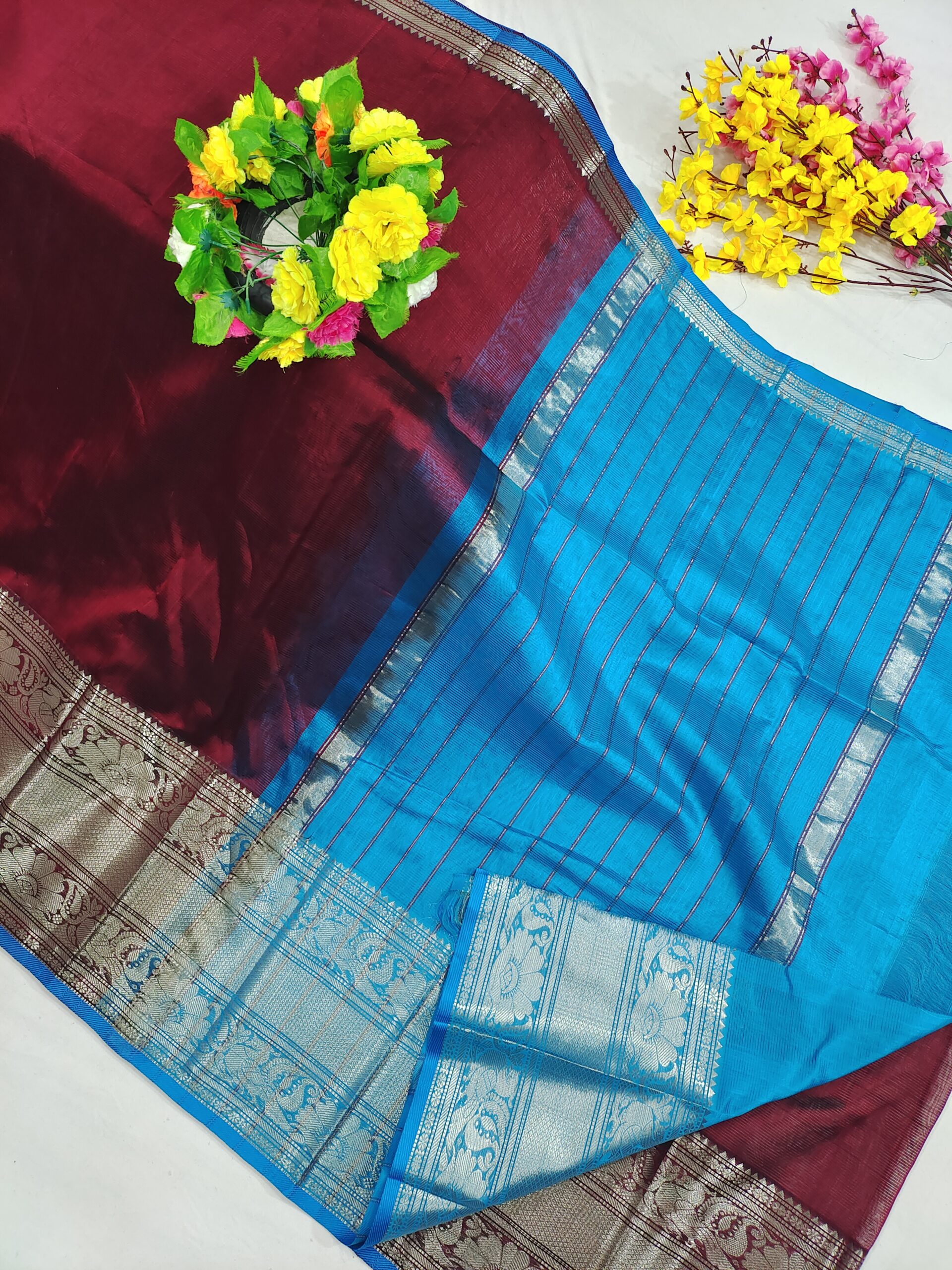 Pallu:Contrast Colour Zari Stripes Pallu.