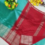 Pallu:Contrast Colour Zari Stripes Pallu.