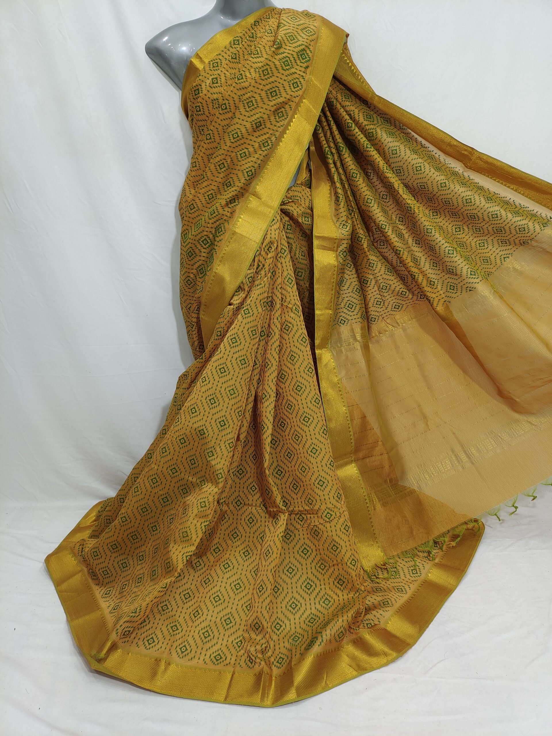 Blouse:Contrast Colour or Plain Blouse with Kanchi Border Body:Saree Body Beautiful Digital Printed Border:Kanchi Border One Side & Small Border Another Side Pallu:Contrast Colour Zari Lines Pallu.