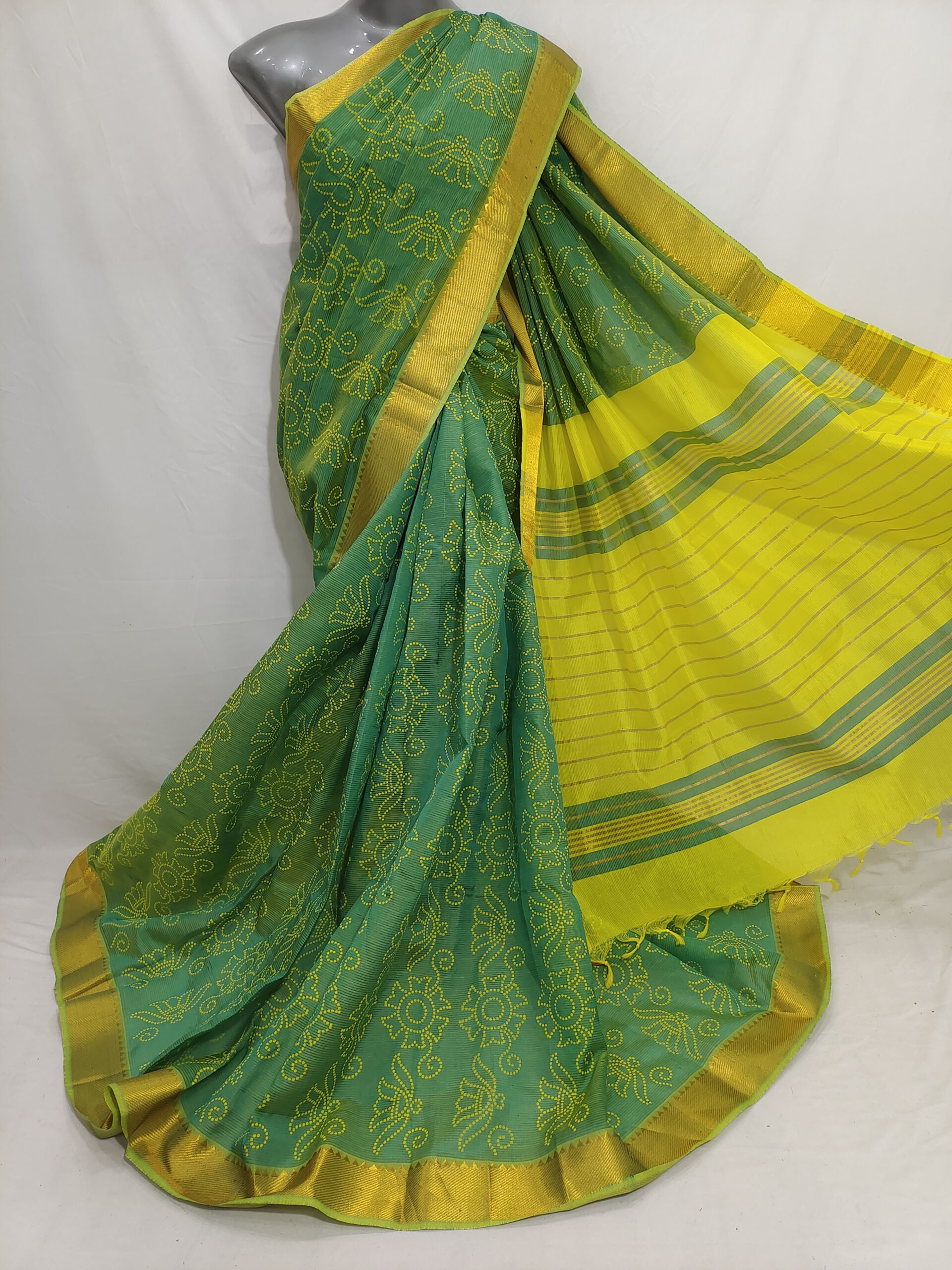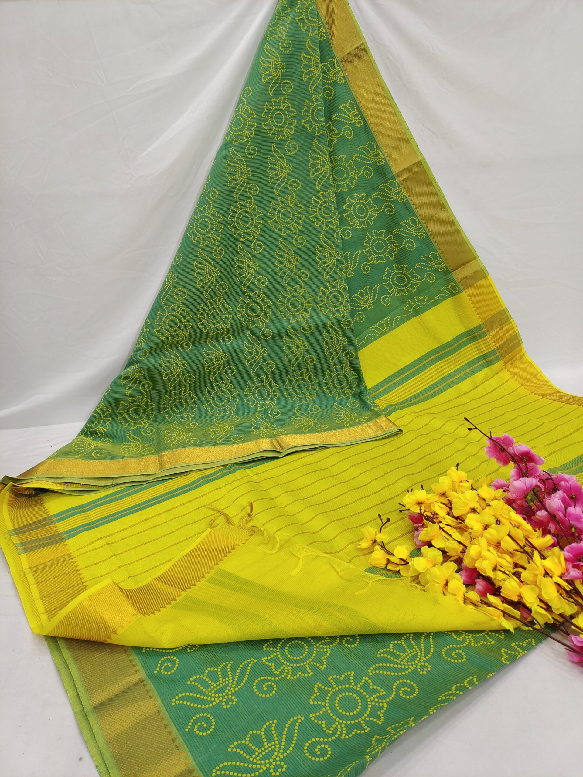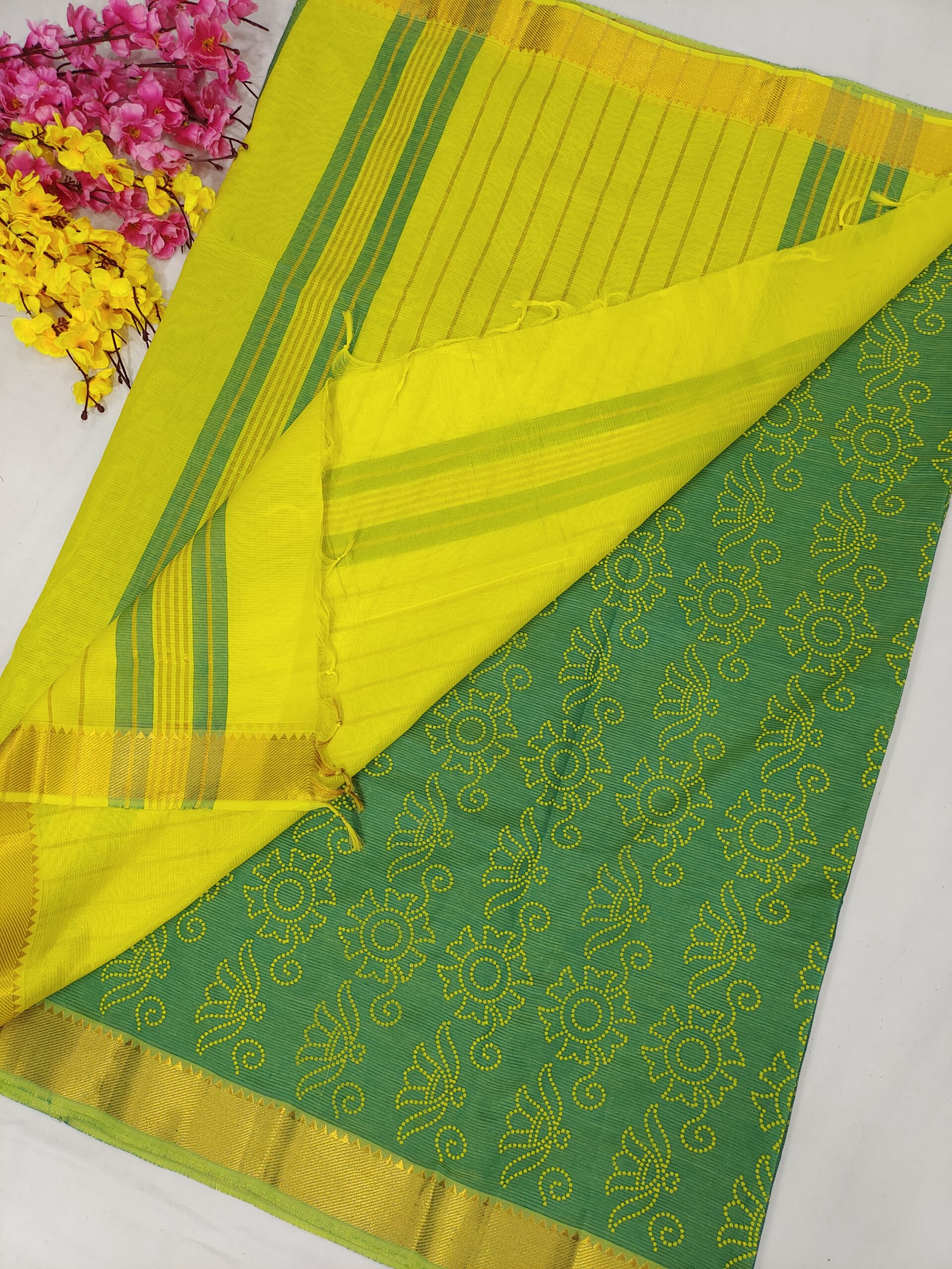 Blouse:Contrast Colour or Plain Blouse with Kanchi Border Body:Saree Body Beautiful Digital Printed Border:Kanchi Border One Side & Small Border Another Side Pallu:Contrast Colour Zari Lines Pallu.