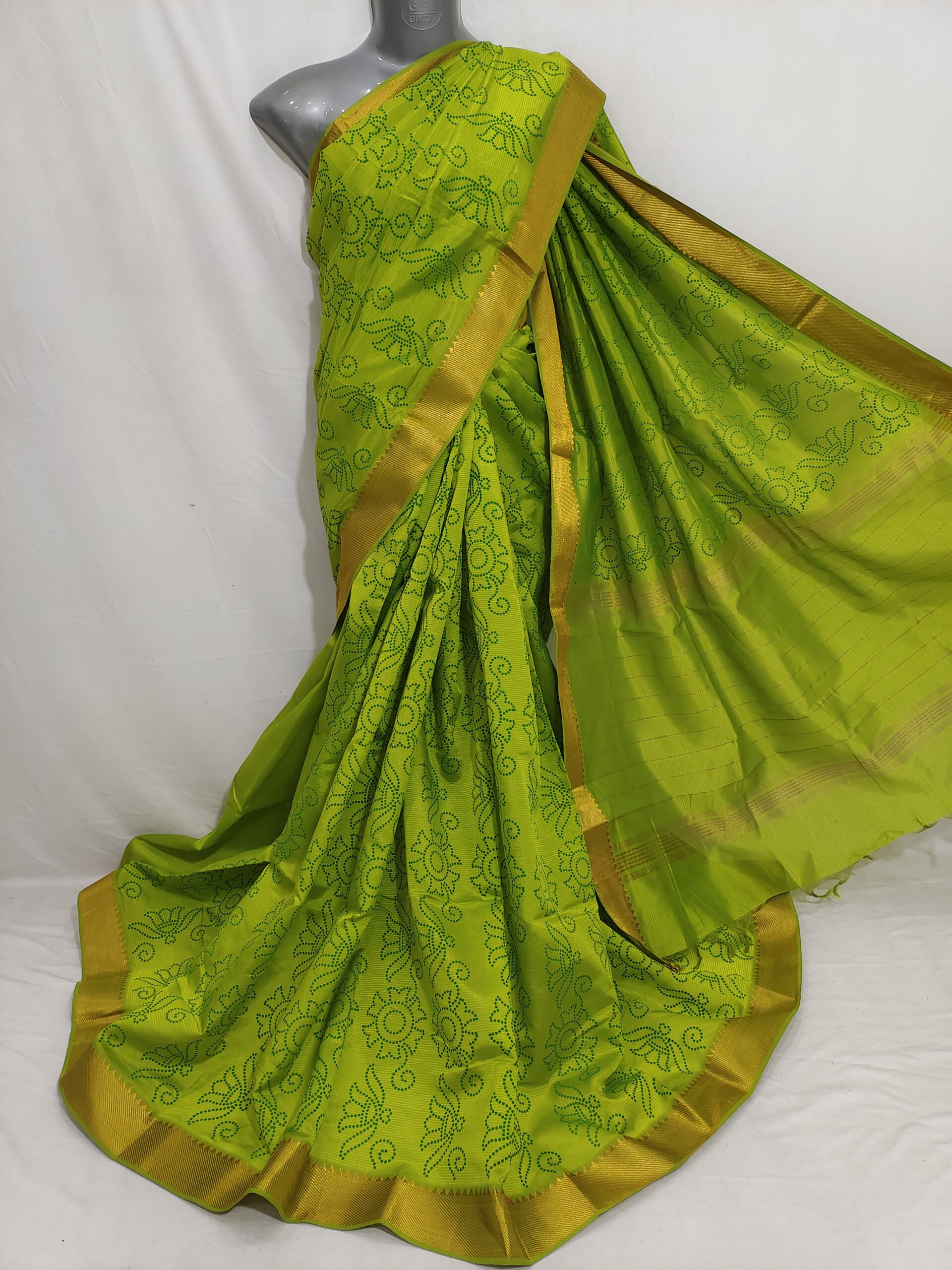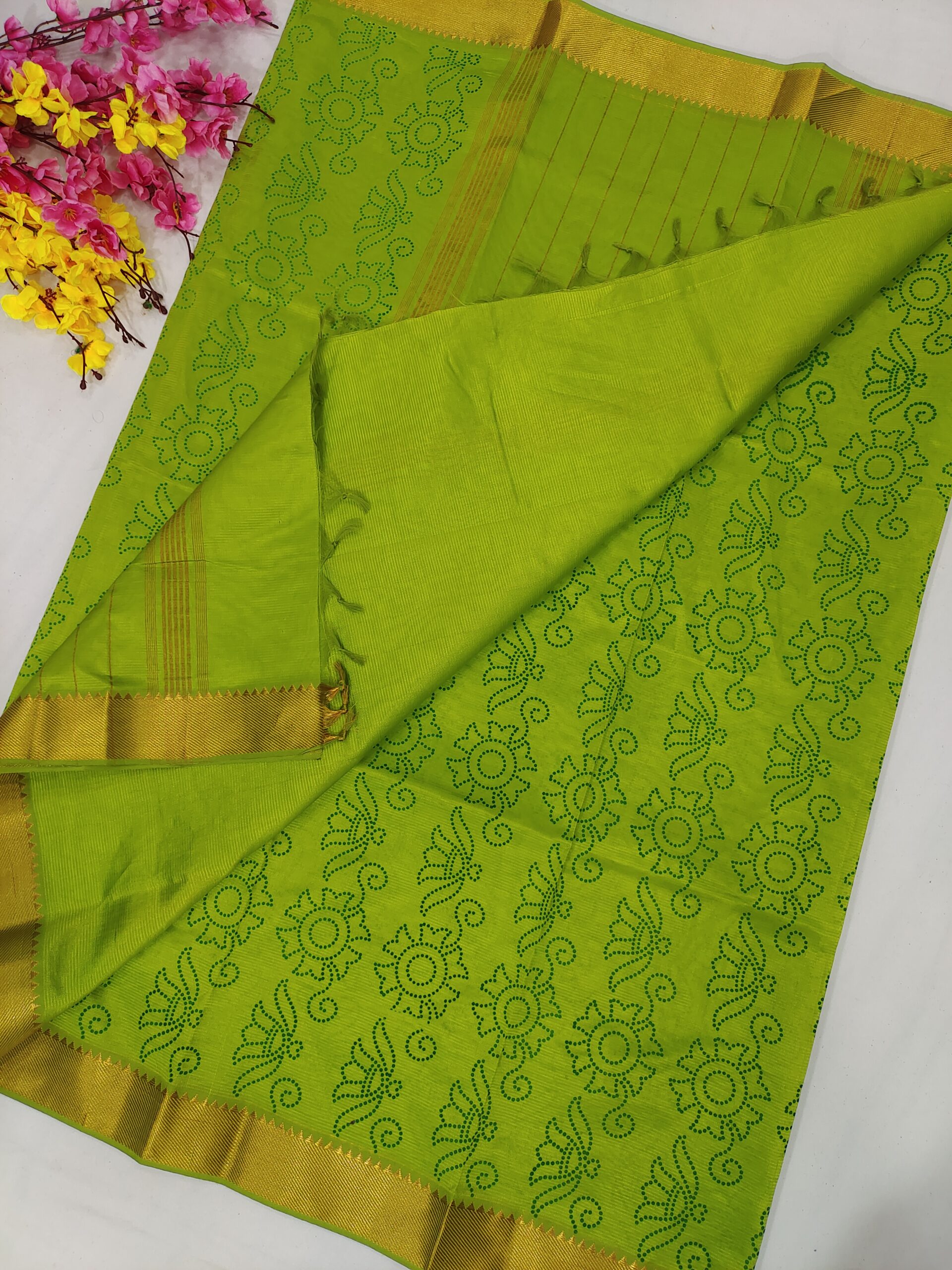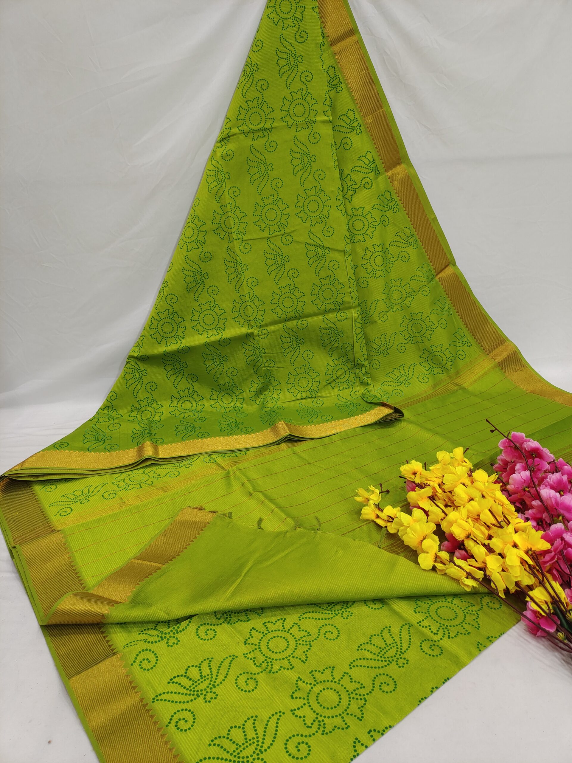Blouse:Contrast Colour or Plain Blouse with Kanchi Border