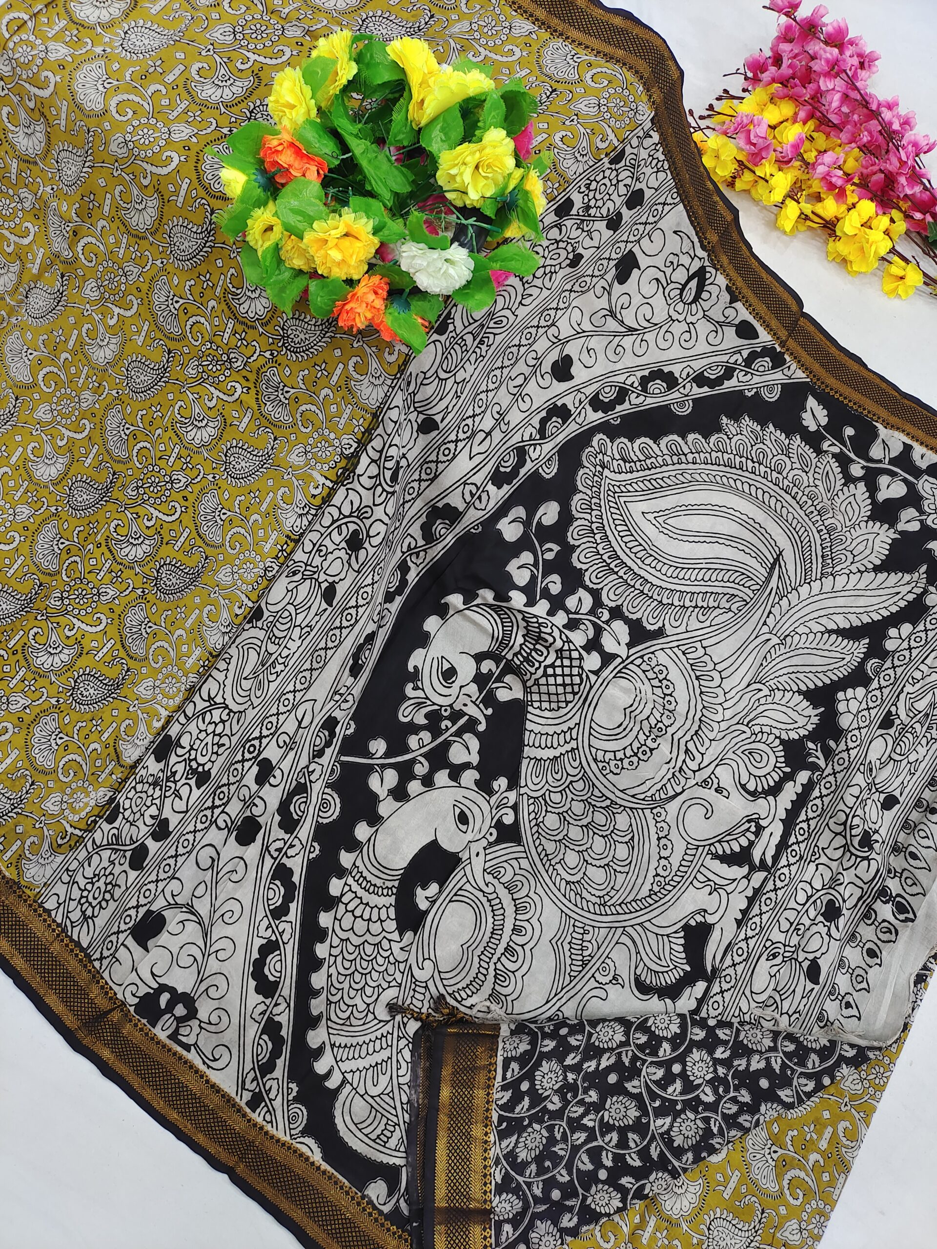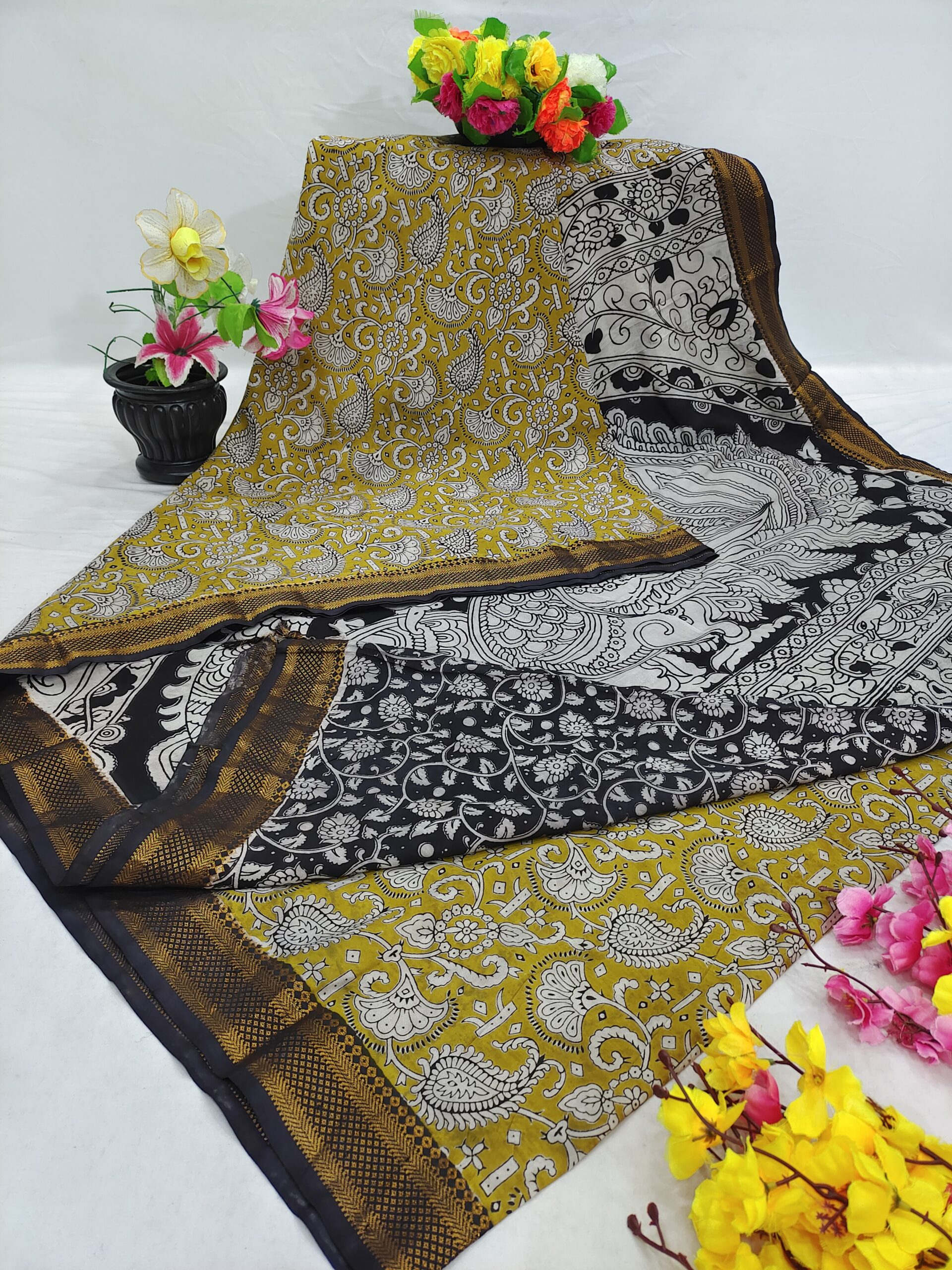 Mangalagiri Pattu Kalamkari Outline Sarees