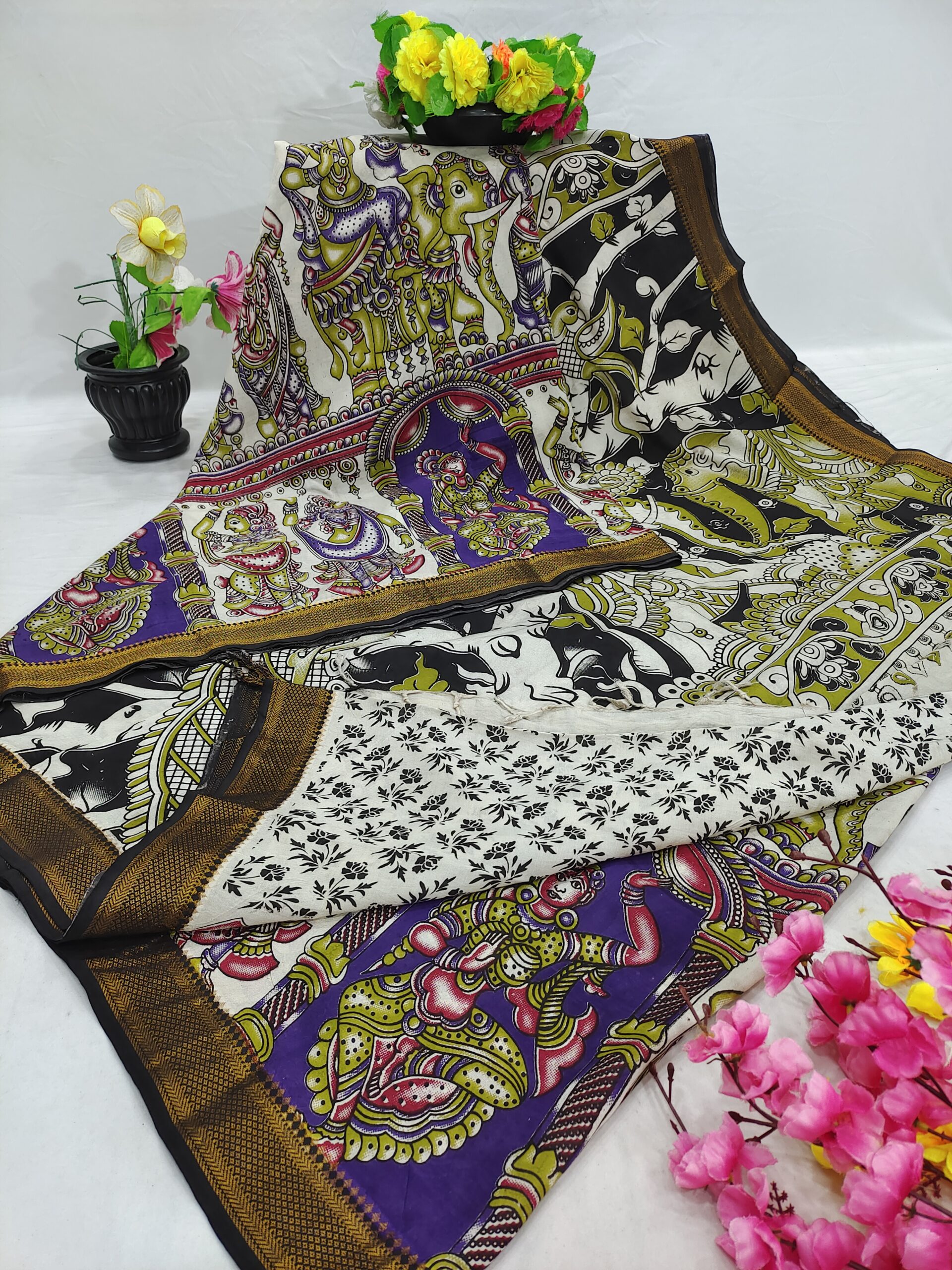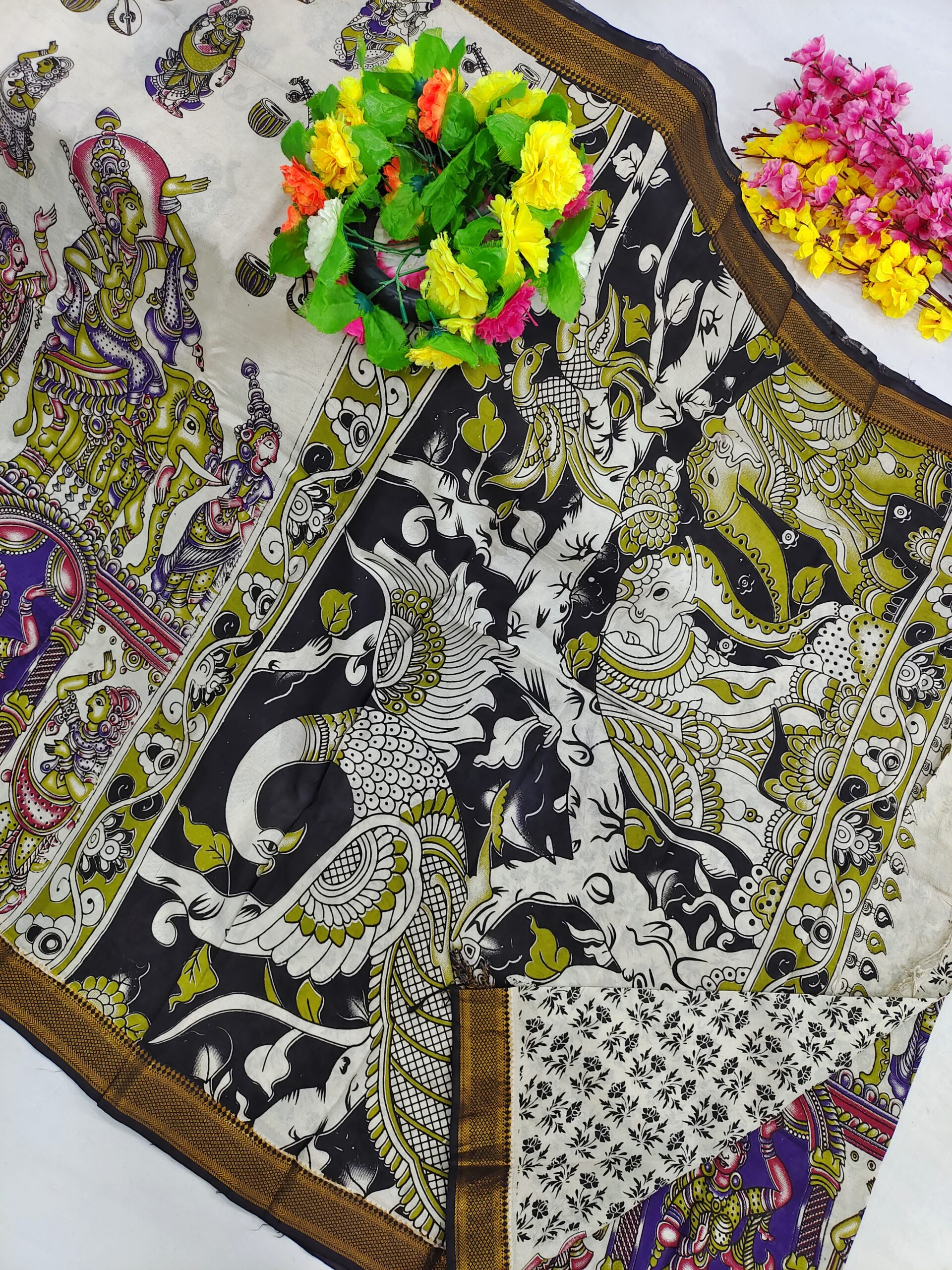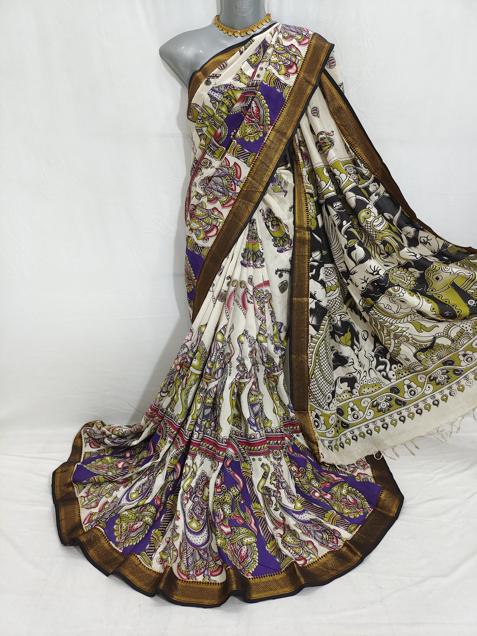 Mangalagiri Pattu Kalamkari Outline Sarees
