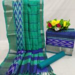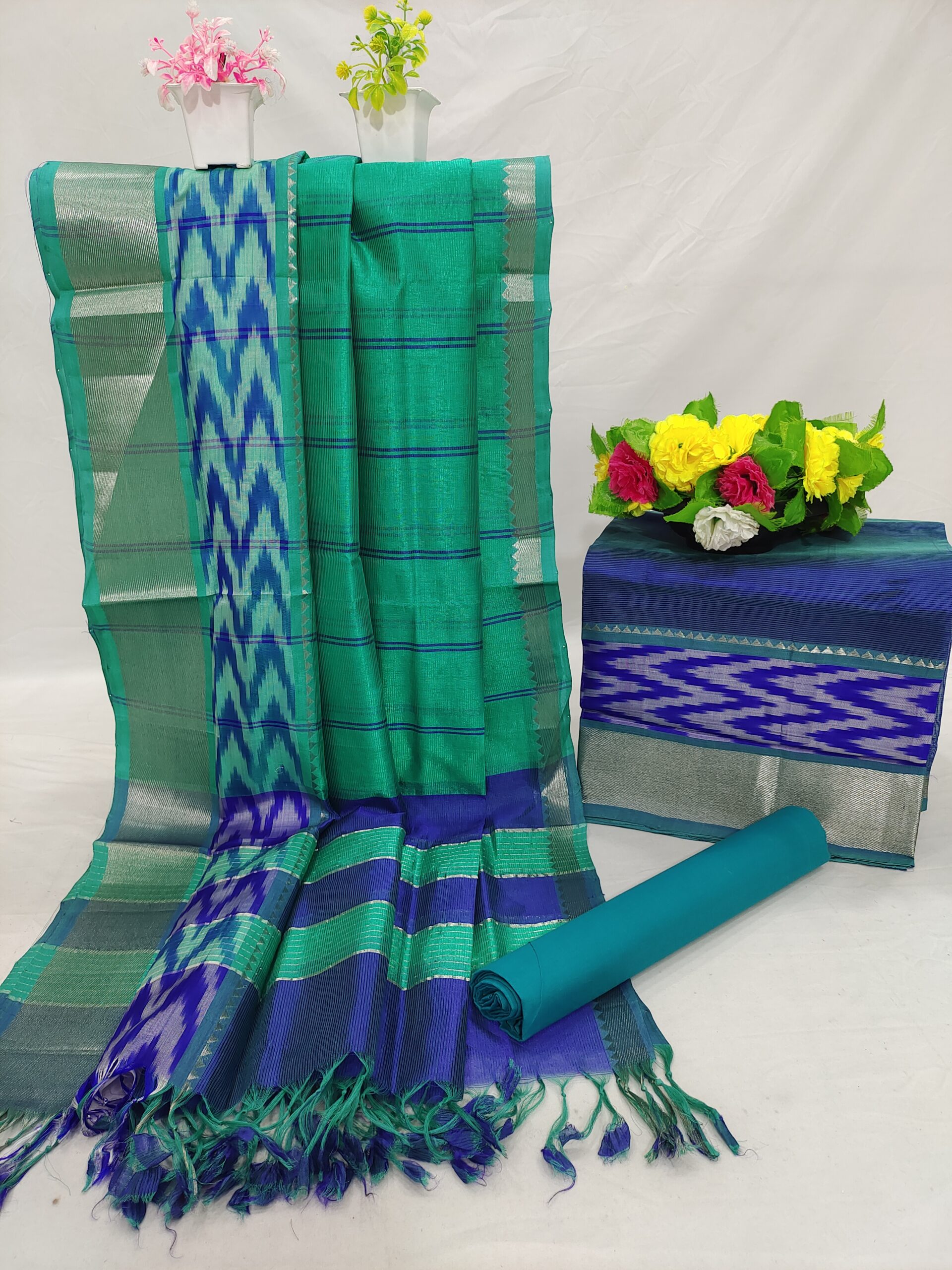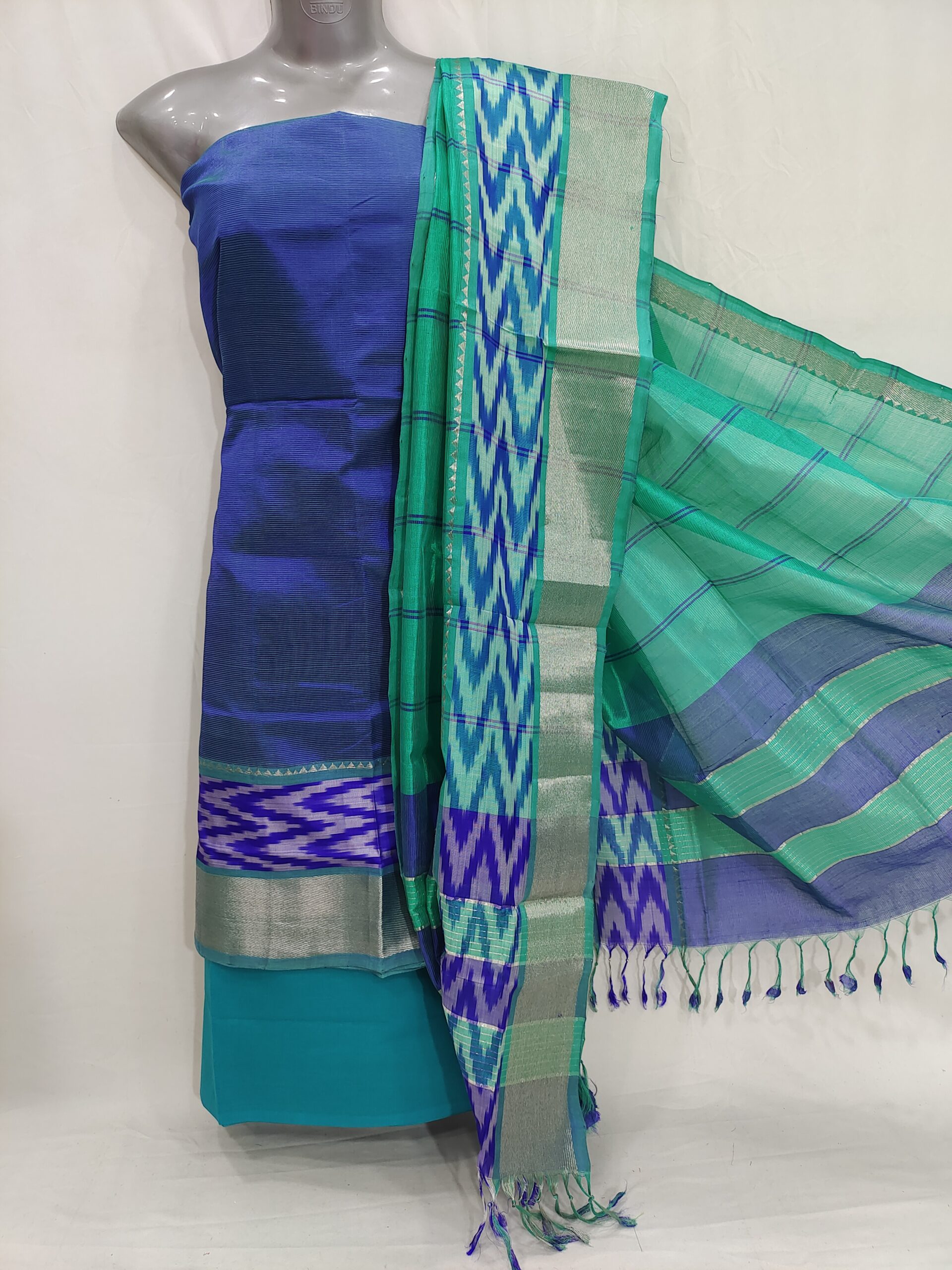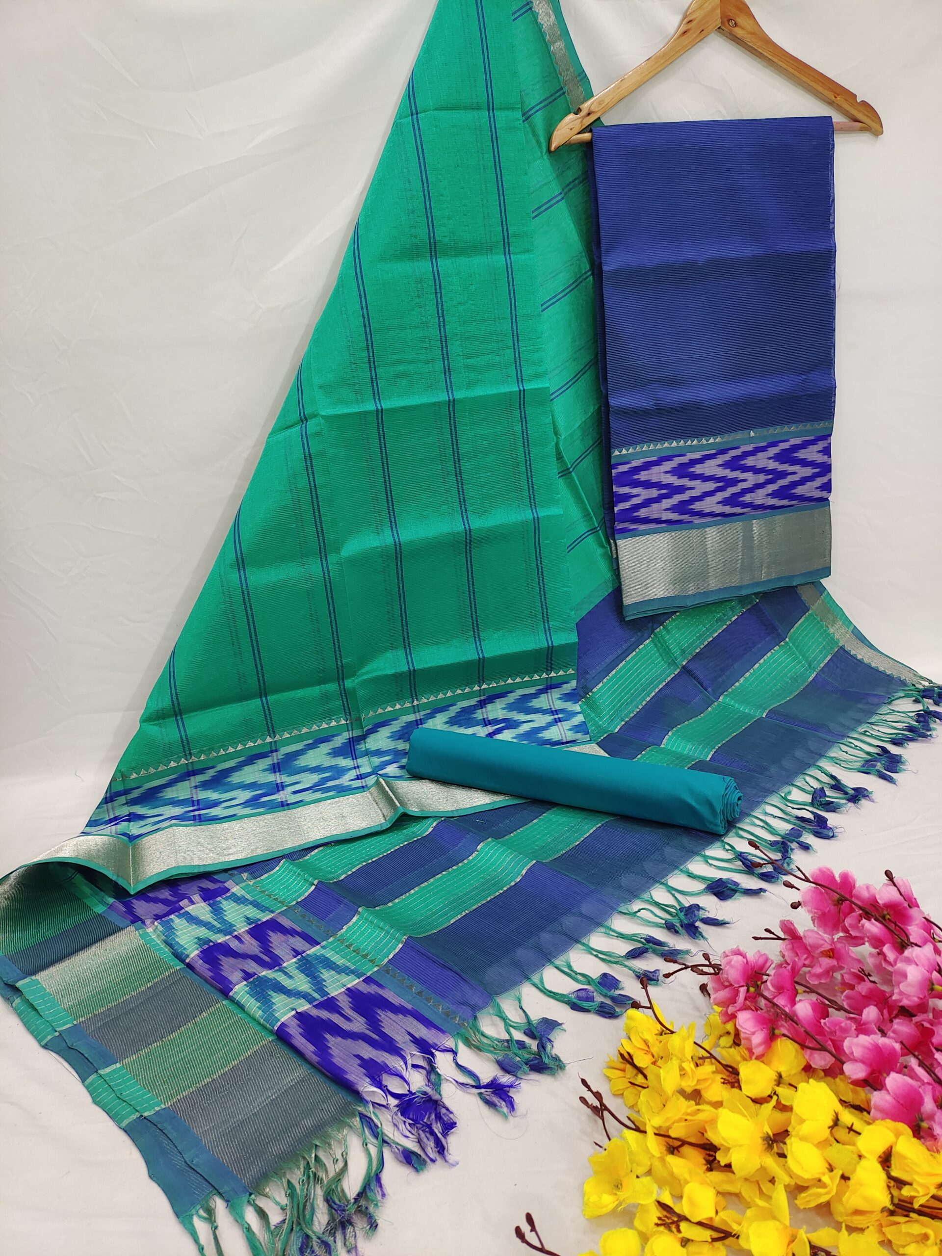 Mangalagiri Pattu Pochampalli Border Zari Dress Material Set (Unstiched)