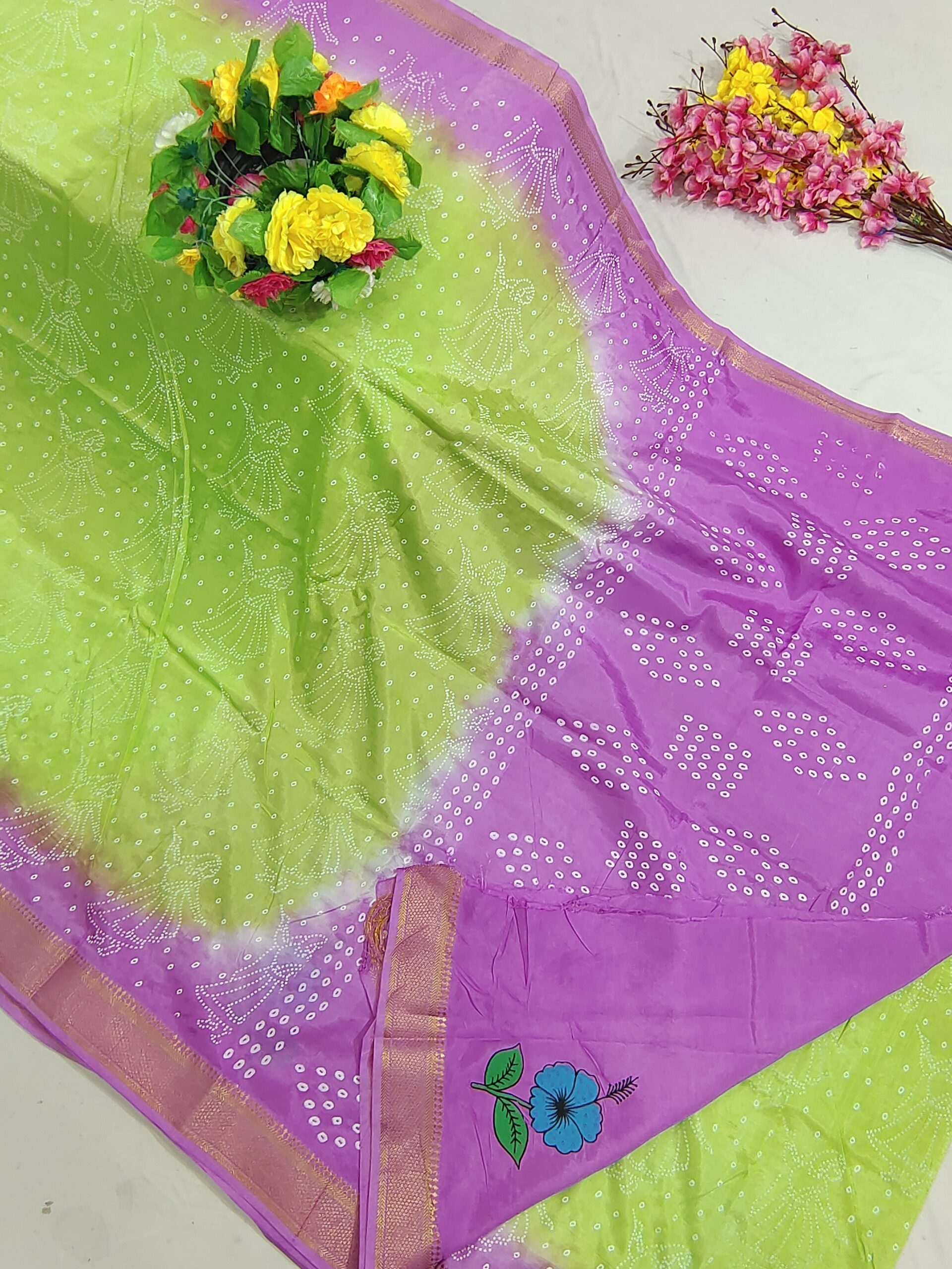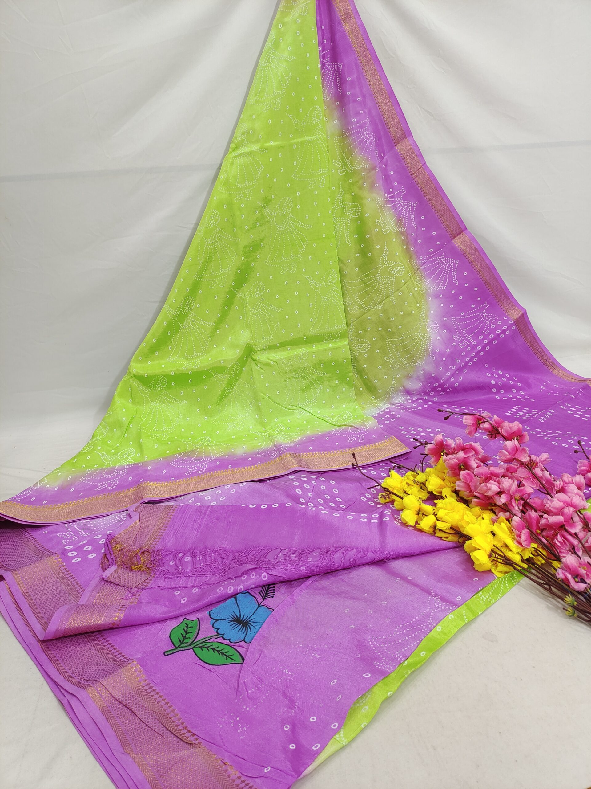 Mangalagiri Pattu Shibhori Dyeing Small jari Border Sarees