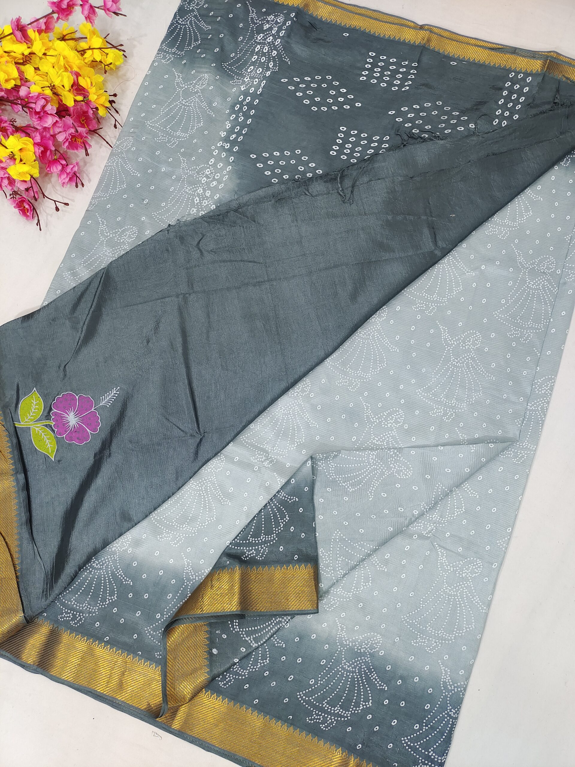 Mangalagiri Pattu Shibhori Dyeing Small jari Border Sarees