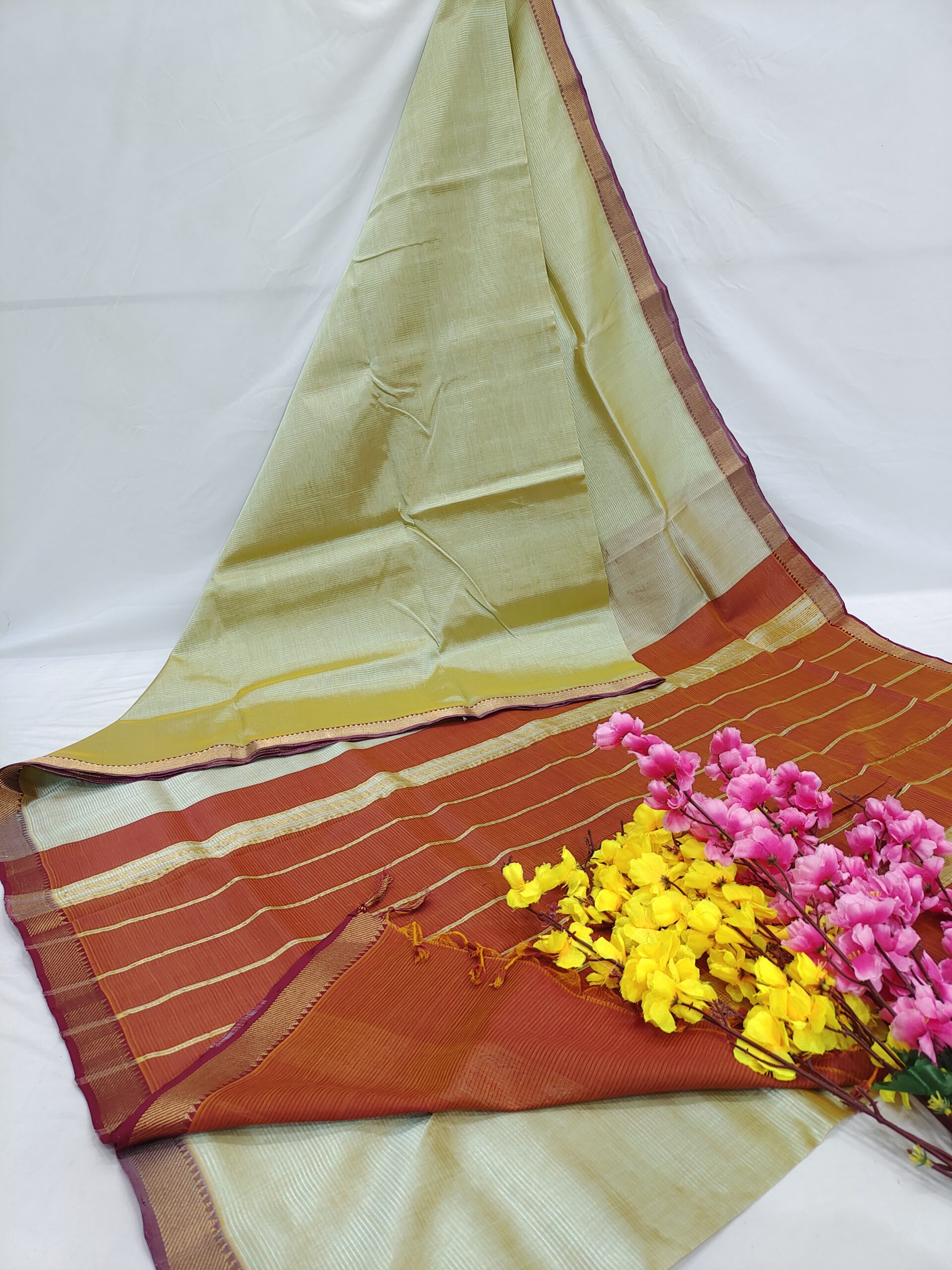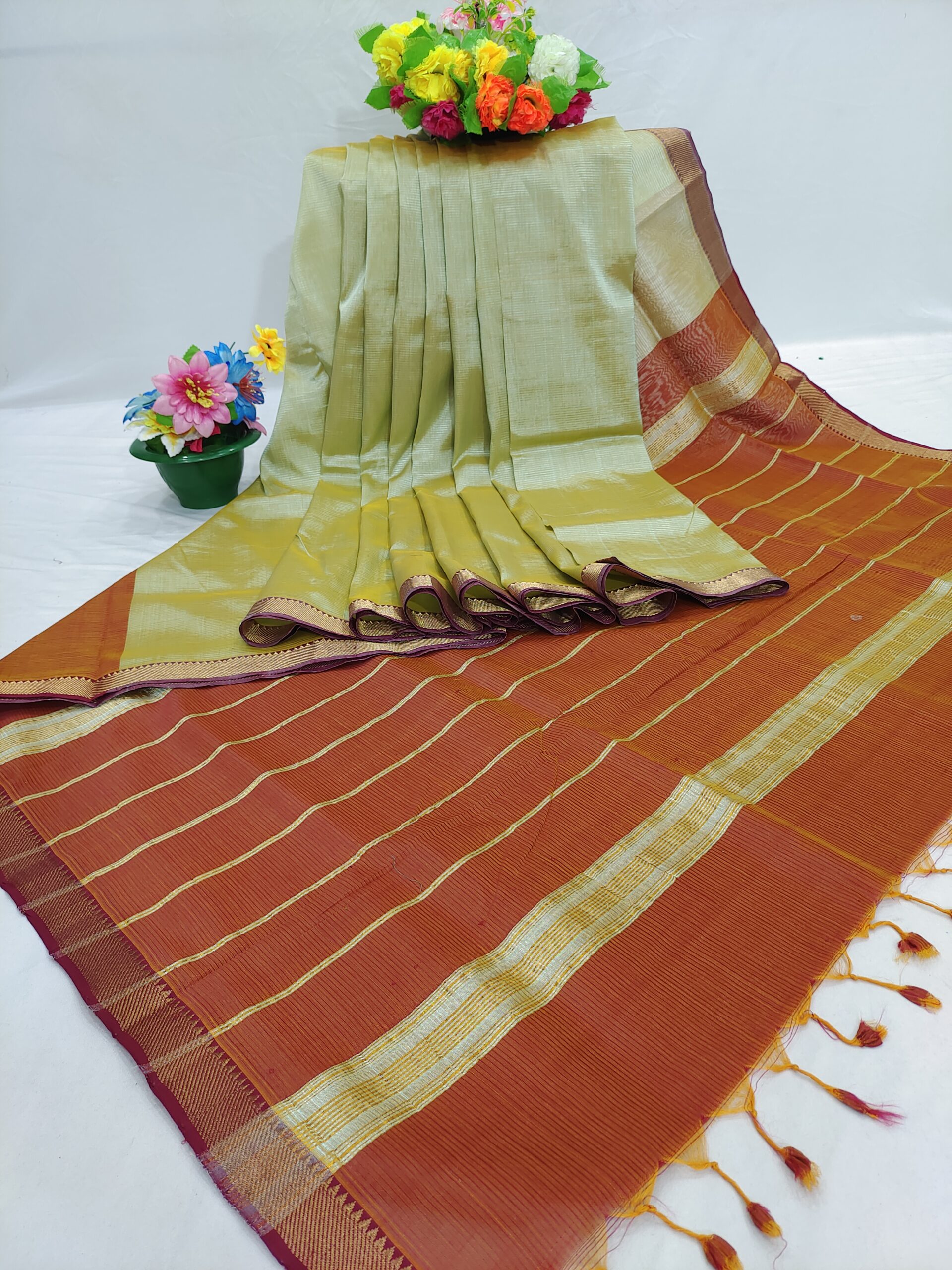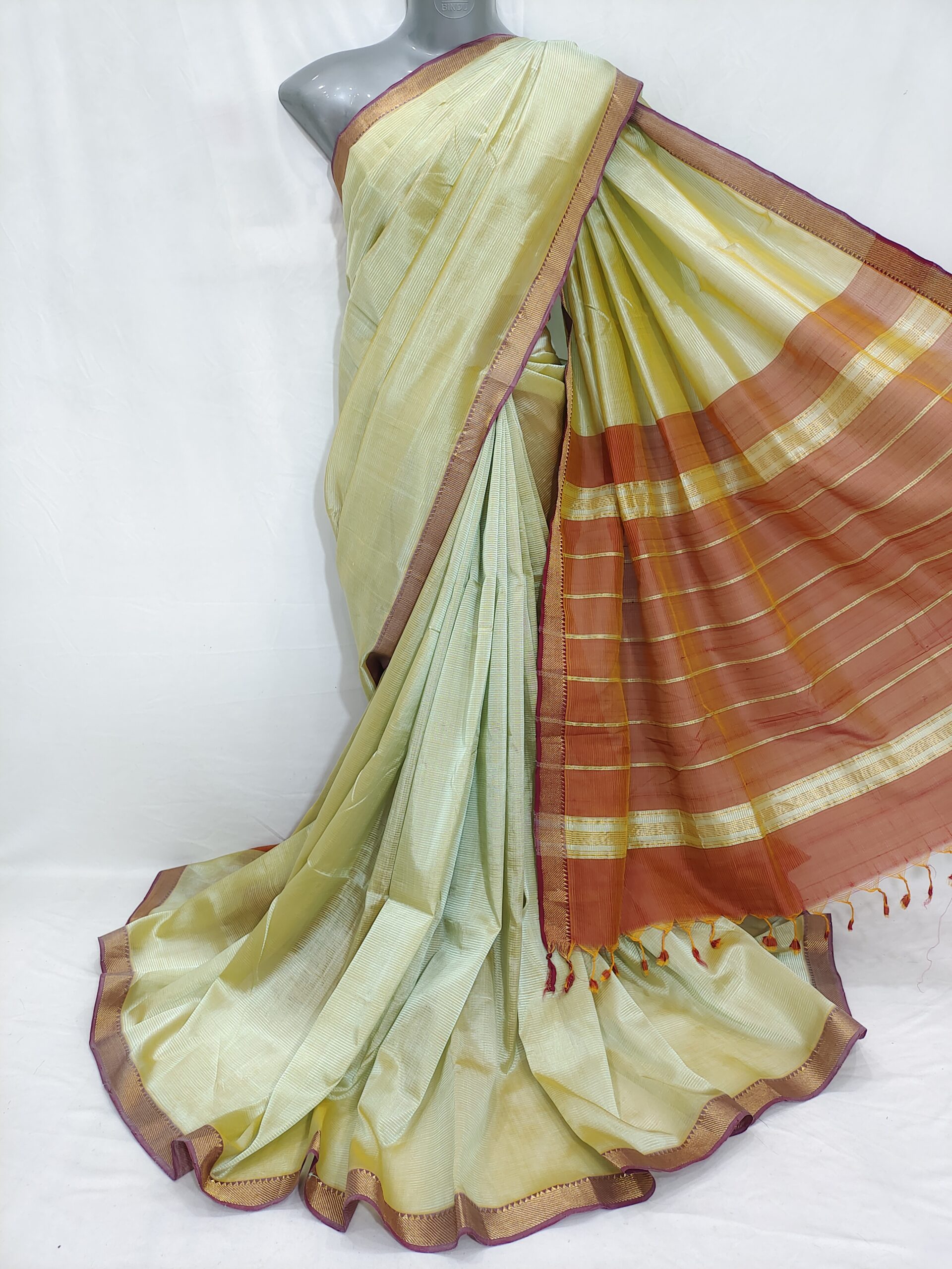 Blouse: Running Plain Or Contrast Blouse Body: Saree Body Beautiful Plain Border: Beautiful Small Zari Border Pallu : Running Or Contrast Horizontal Lines Pallu. Wholesale Price: 1700