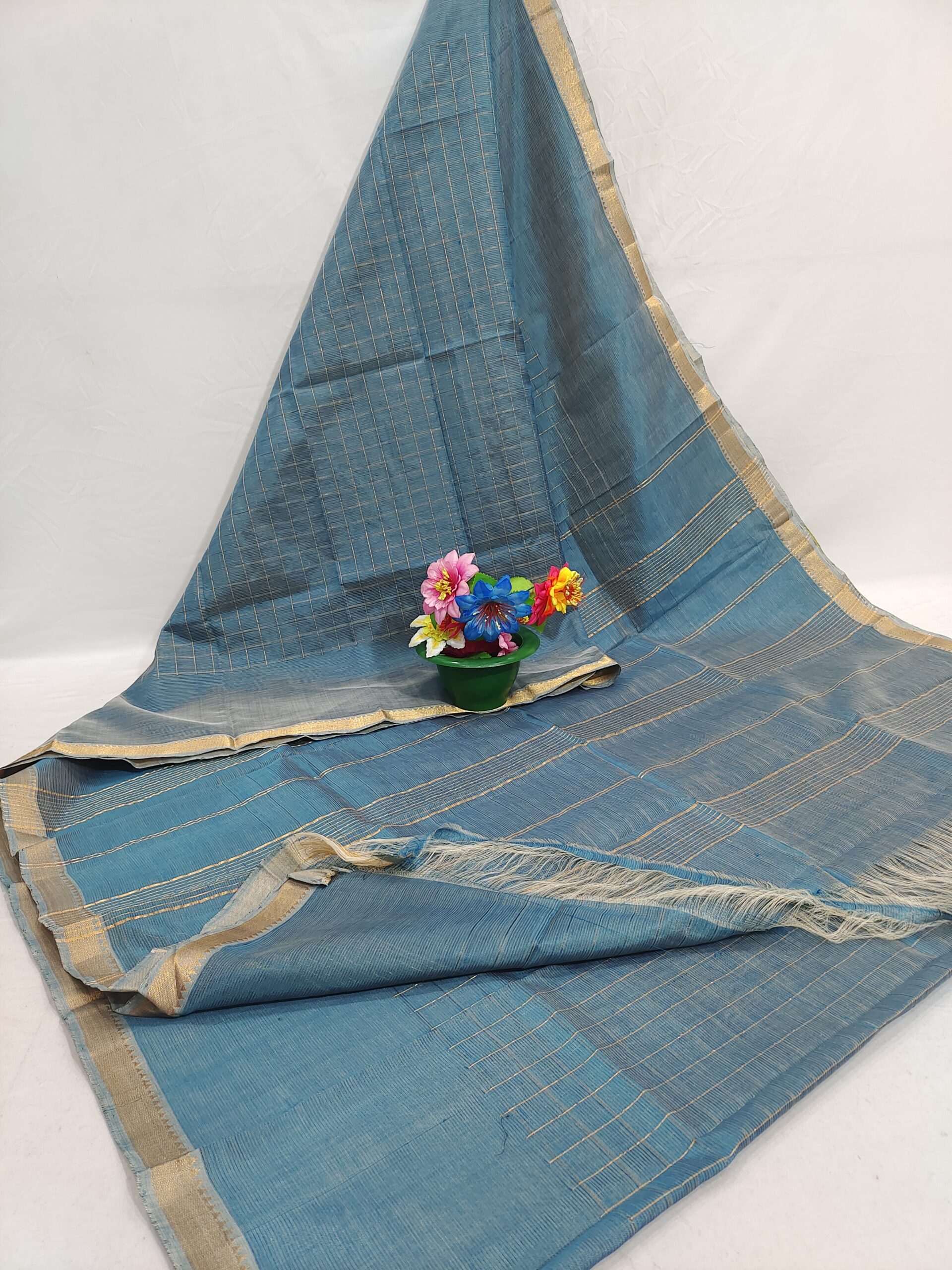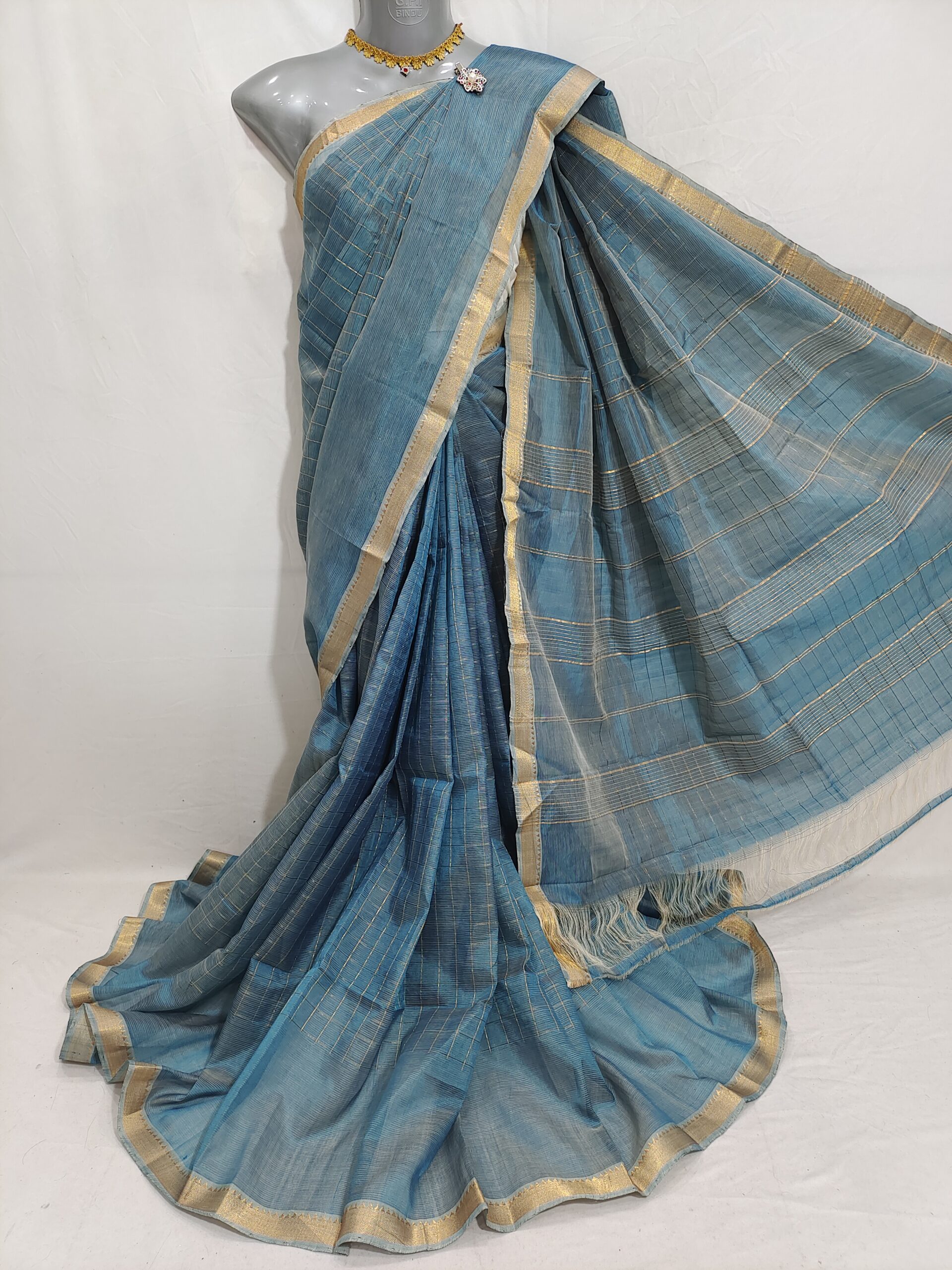 Mangalagiri Pattu Zari Border Middle Zari Check Sarees
