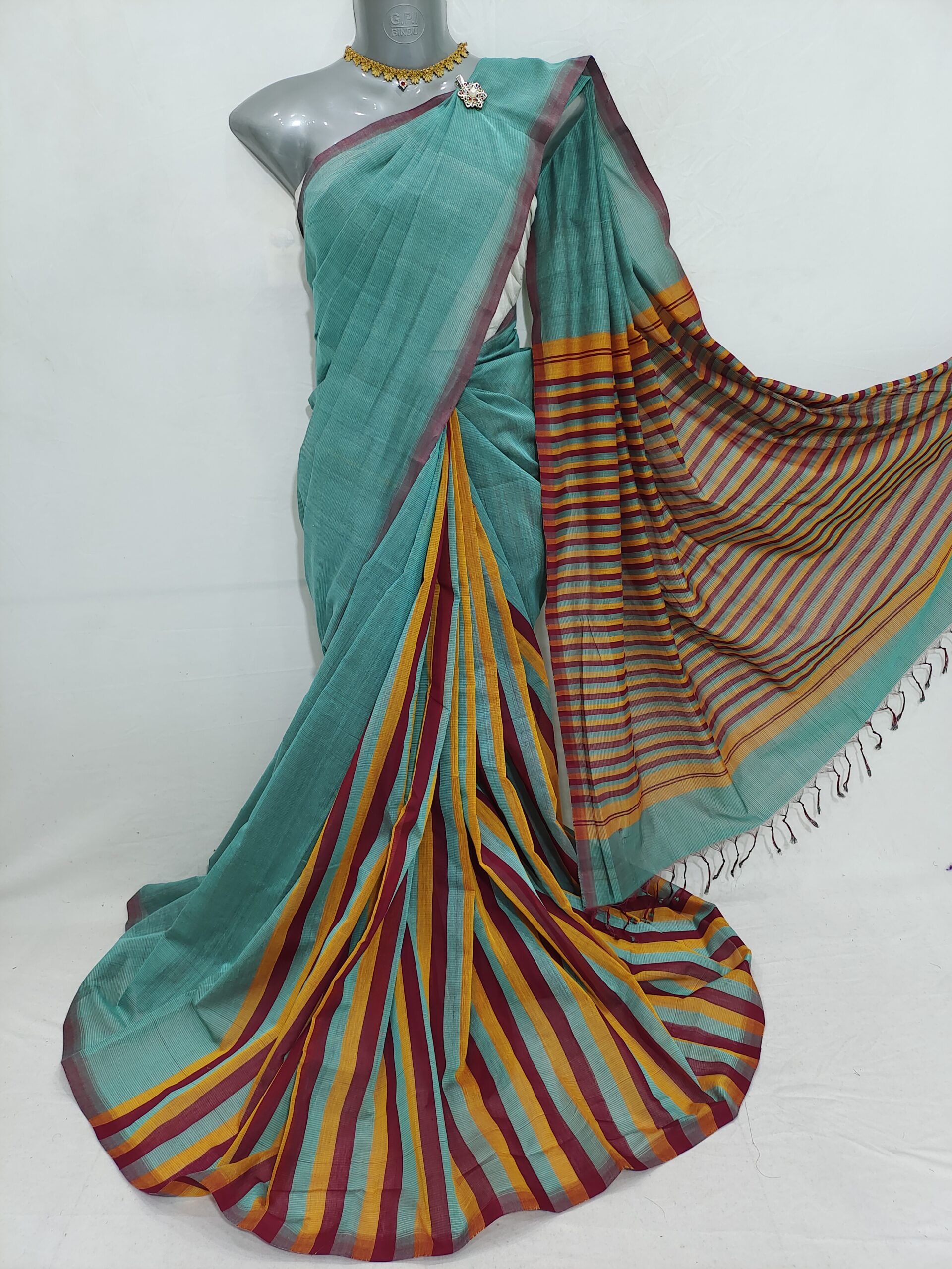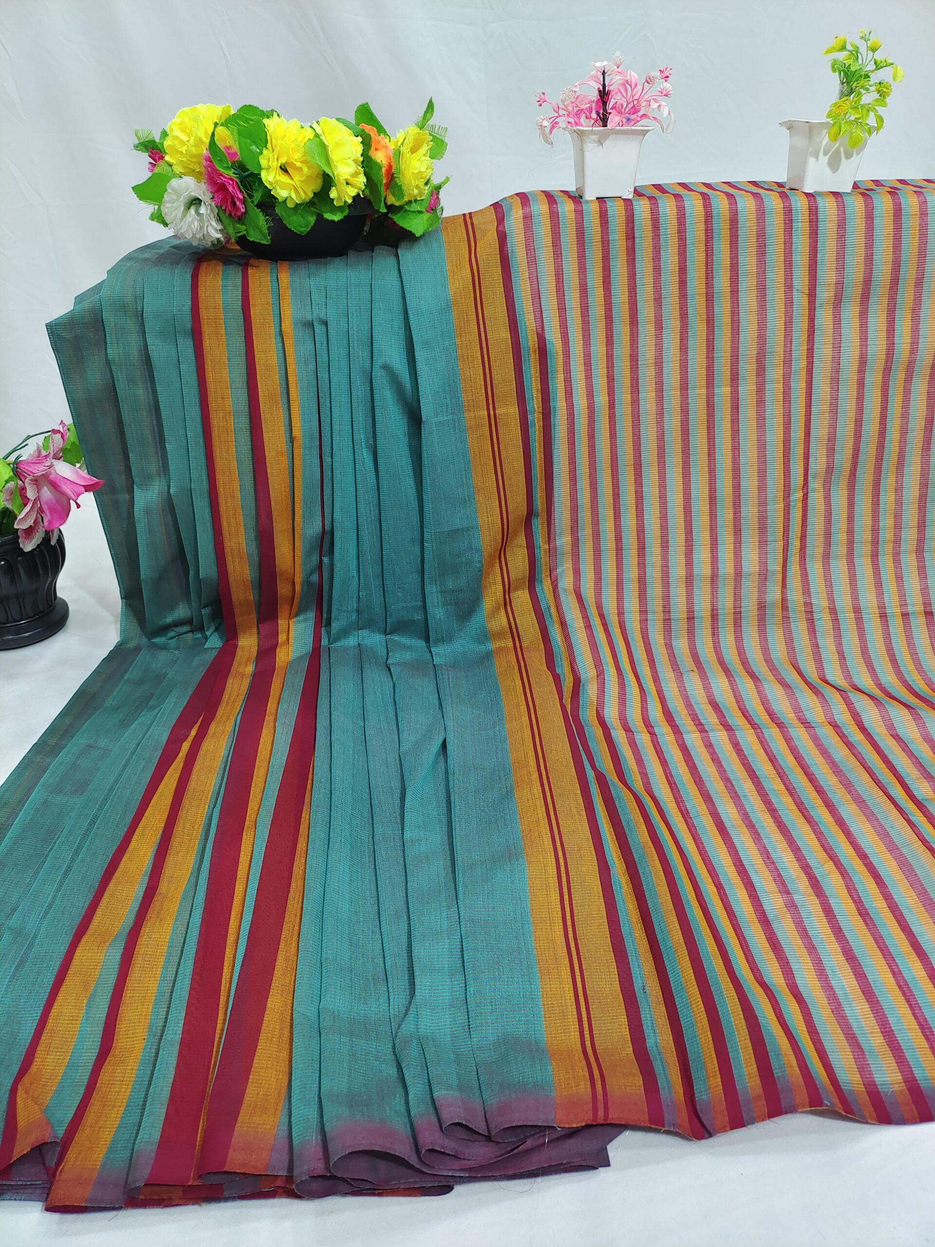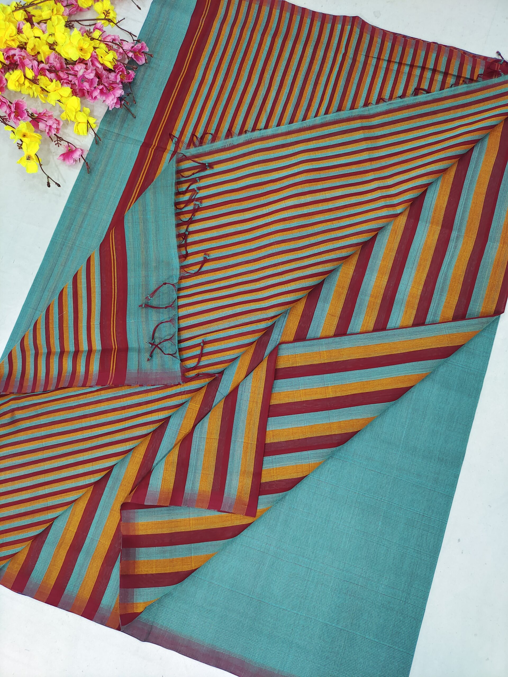 Pallu: Beautiful Contrast Colour Stripes Pallu.