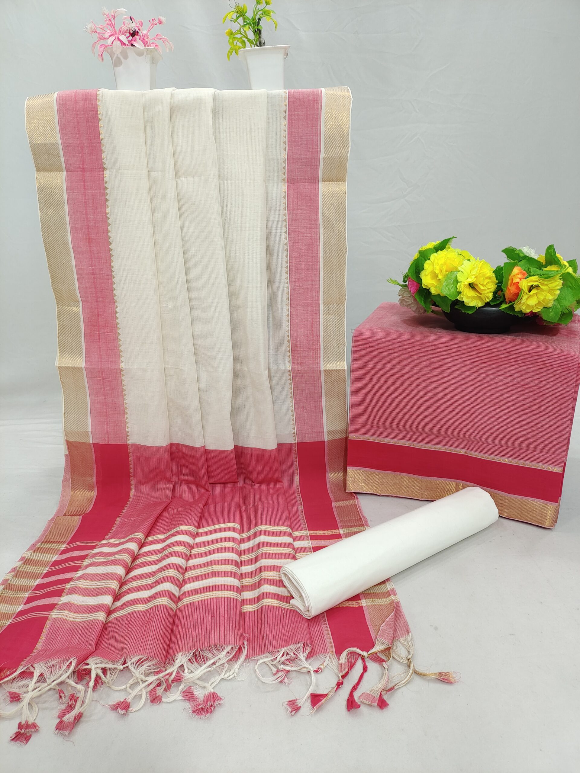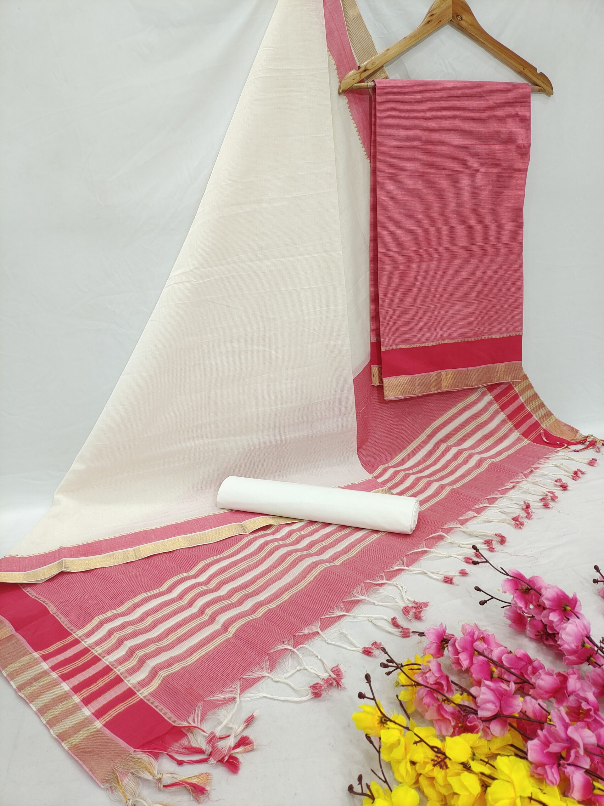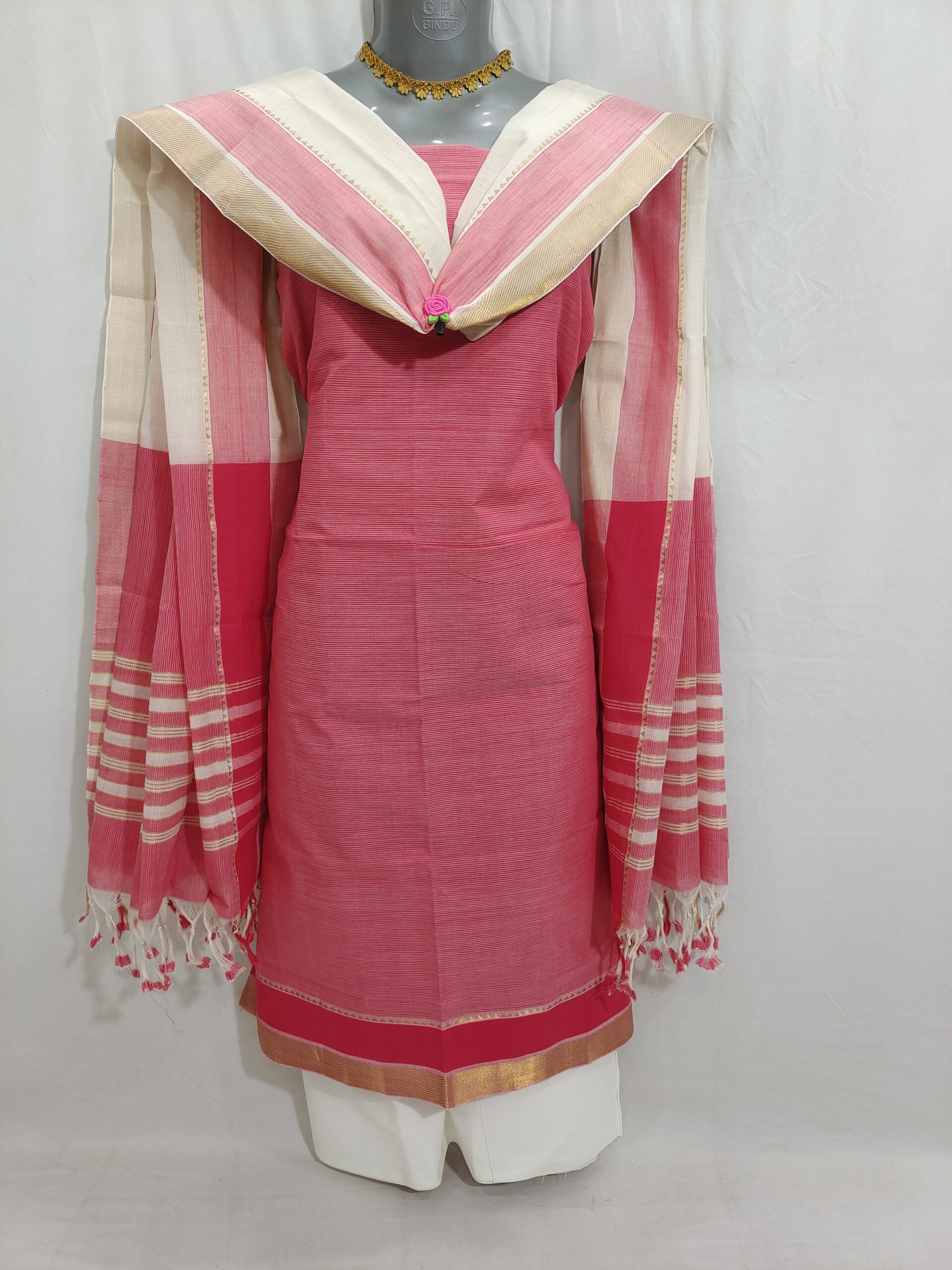 Mangalagiri Pure Handloom Cotton Zari Border Dress Material Set (Unstiched)